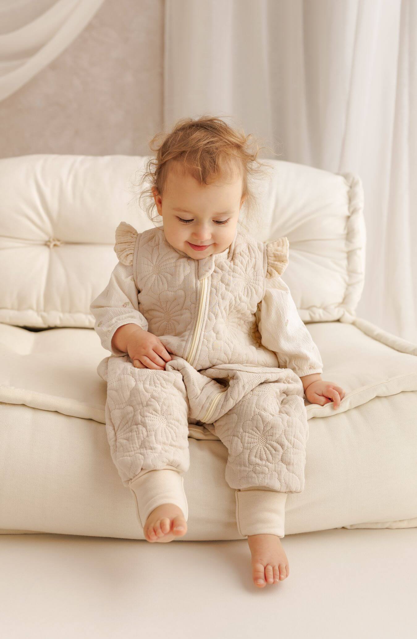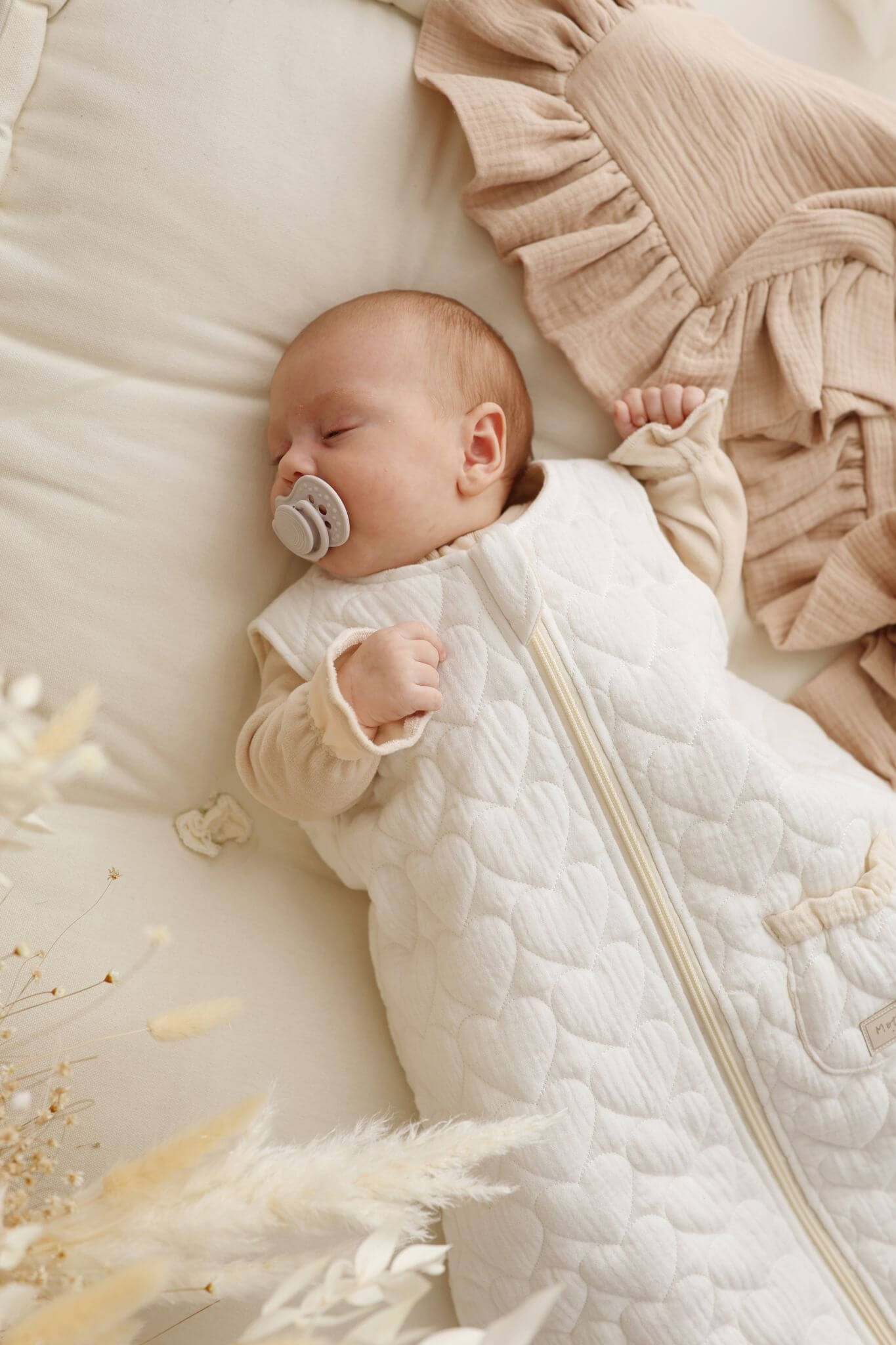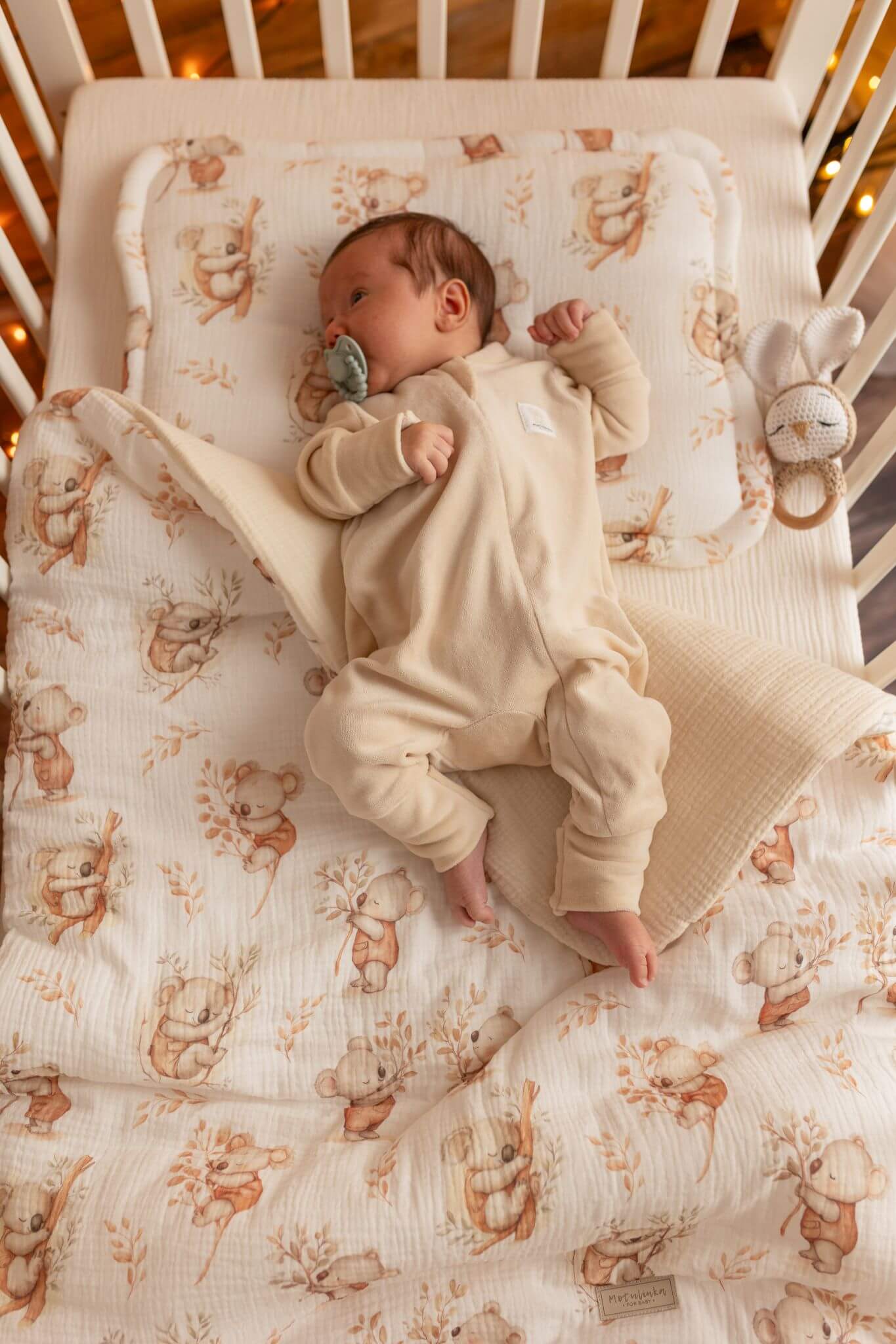 Ručně šité hnízdo pro miminka z měkkého lnu – Béžové