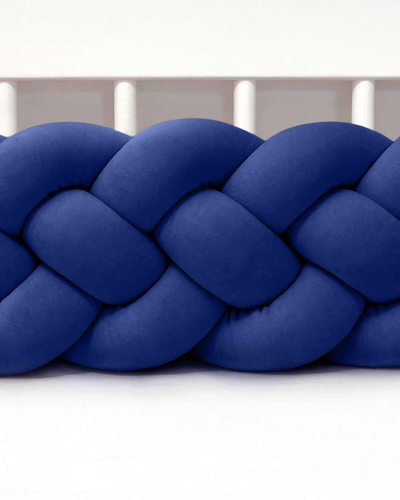 Mantinel do postýlky – Pletený cop 4-pramenný - Tmavě modrý (120-400 cm)