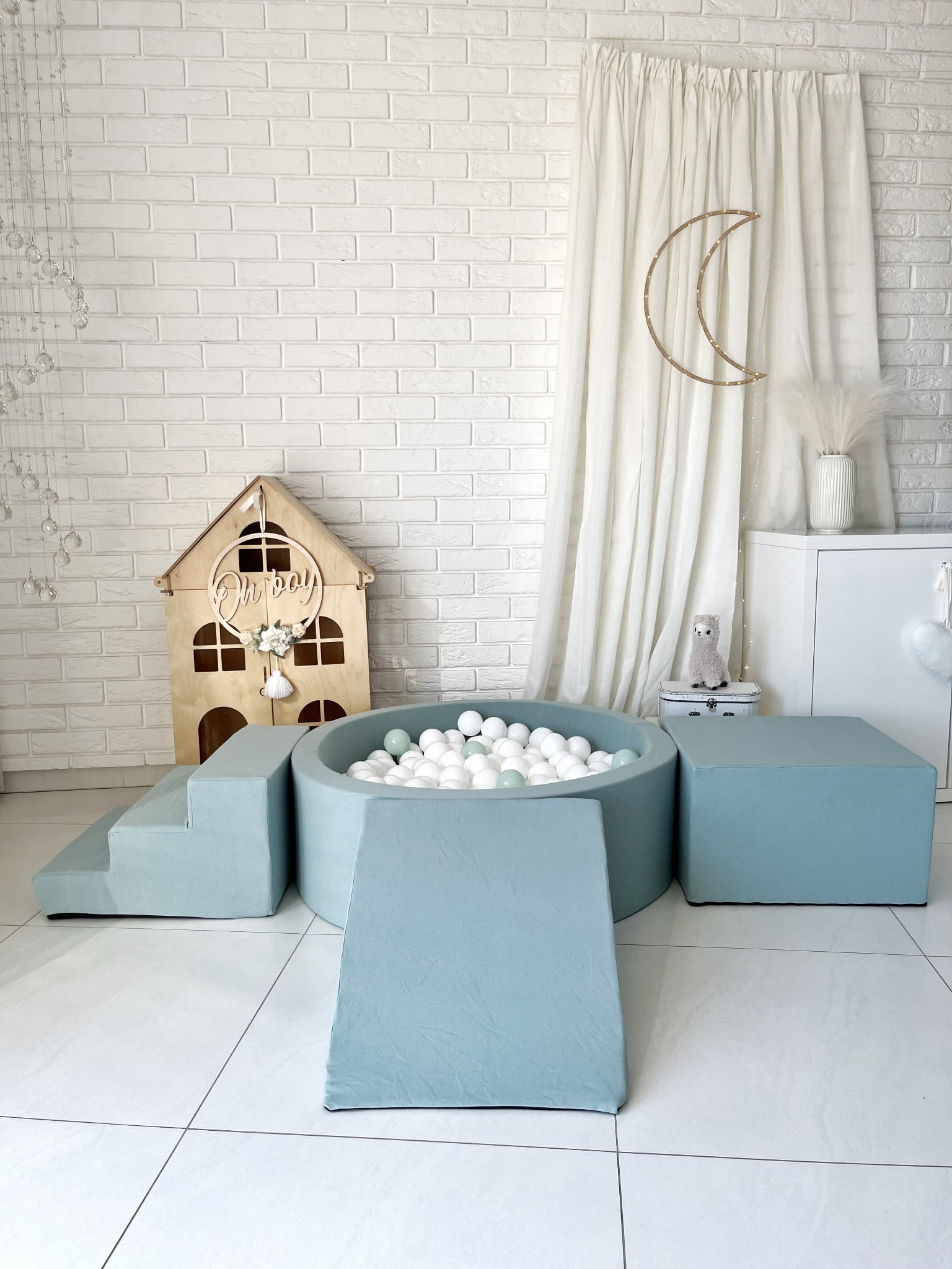 3dílná pěnová hrací sada se suchým bazénkem a 200 míčky – Bavlna (6 barev)