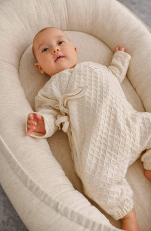Tento zavinovací overal z přírodní bavlny spojuje pohodlí, praktičnost a nadčasový styl. Je ideální na hraní, spánek i speciální příležitosti – postará se o to, aby vaše dítě bylo vždy v teple, pohodlí a spokojené.