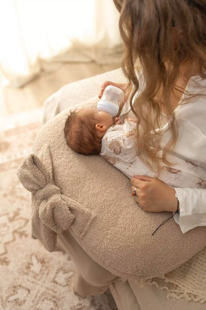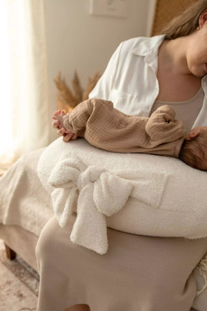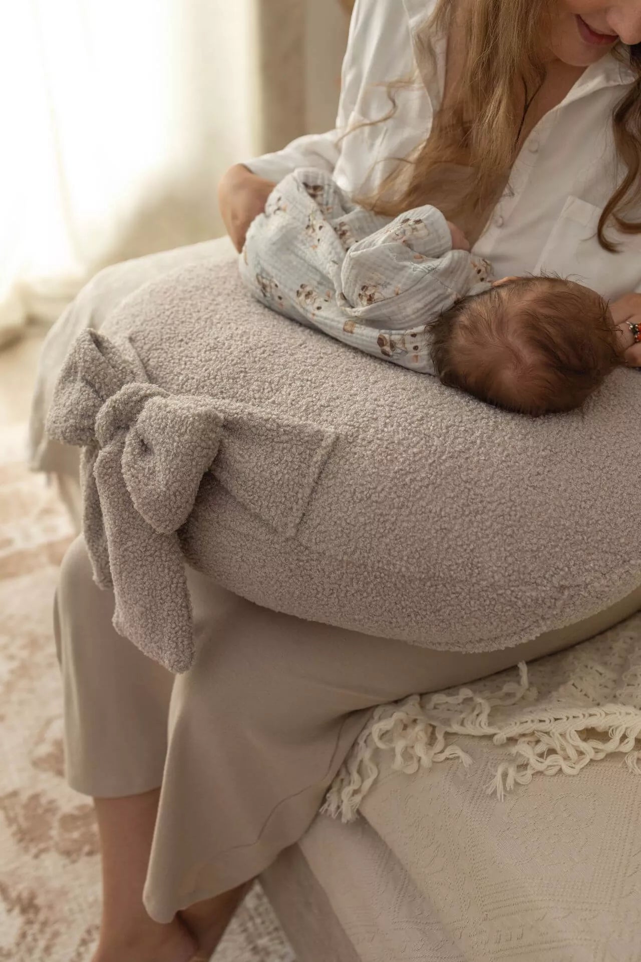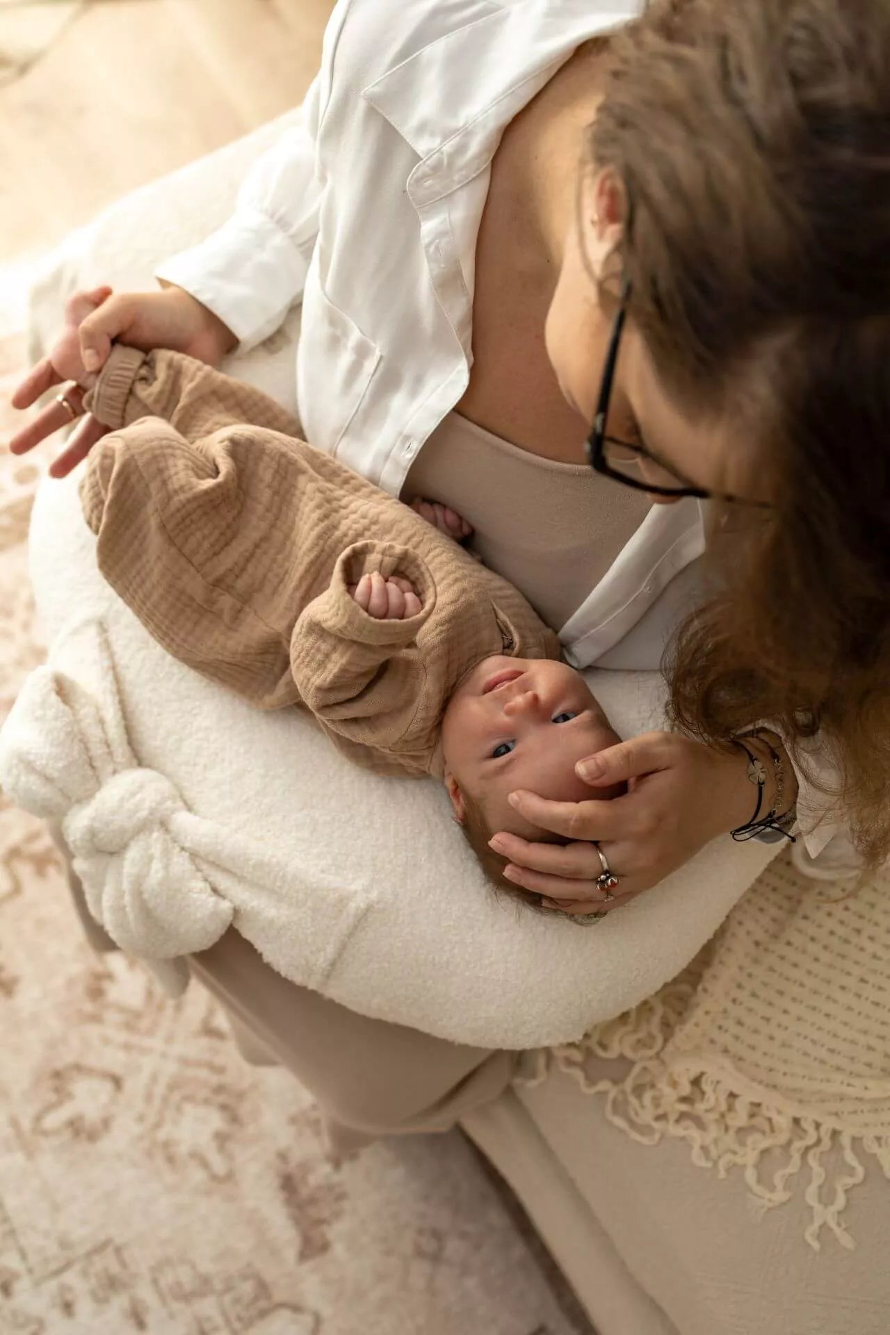 Představujeme náš kojící polštář Bouclé s mašlí – kombinaci elegance, pohodlí a praktičnosti. Tento polštář je navržen pro podporu maminky i dítěte při kojení i krmení z láhve, přináší správnou oporu, ulevuje zádům a ramenům a pomáhá správně polohovat miminko pro pohodlné přisátí nebo krmení.