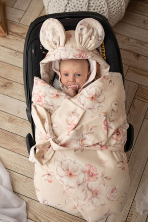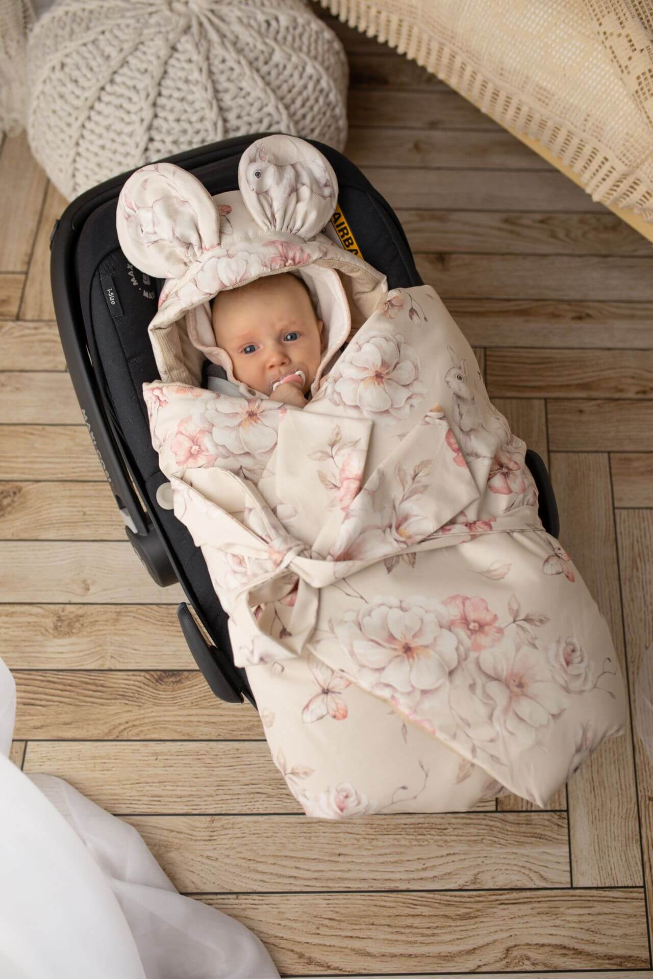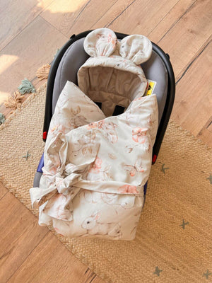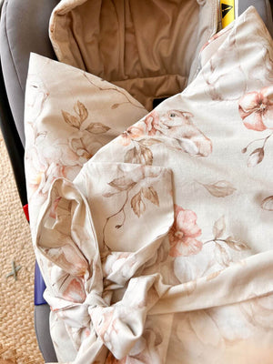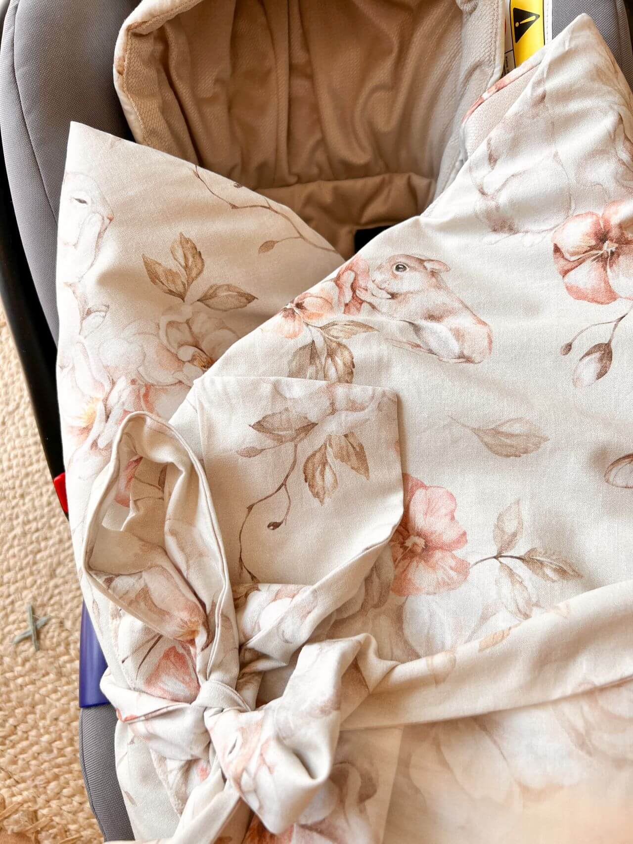 Zavinovačka pro miminka do autosedačky – samet a bavlna – Pastel Meadow s béžovým sametem