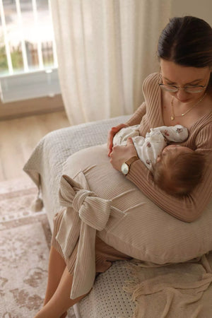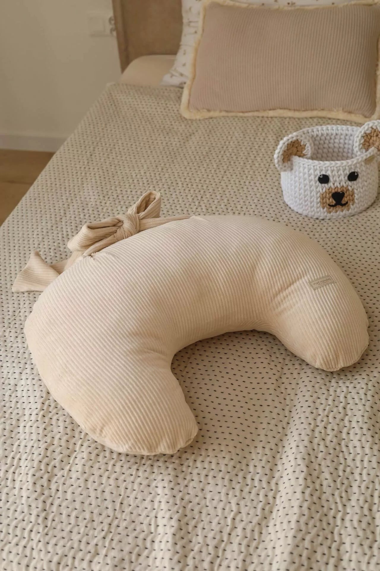Náš béžový kojící polštář z manšestrového sametu je navržen pro maximální pohodlí maminky i miminka. Stylový doplněk, který spojuje funkčnost s elegancí a je ideální při kojení, krmení z lahvičky i během hry.