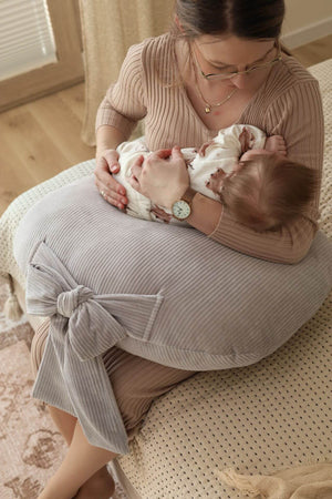 Šedý kojící polštář z manšestrového sametu je ideální volbou pro moderní rodiče. Nabízí pevnou oporu, stylový vzhled a komfort při každém krmení i při společných chvílích s miminkem.