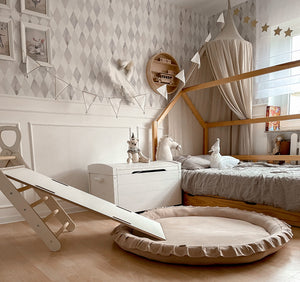 - Ochranný okraj: 12 cm silné polstrování vytváří útulný a bezpečný prostor pro dítě