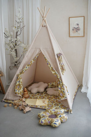 Dětský teepee stan s hrací podložkou Flower Power – vyrobeno na zakázku