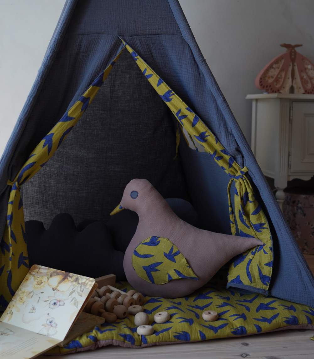 Dětský teepee stan s hrací podložkou Modern Denim – vyrobeno na zakázku