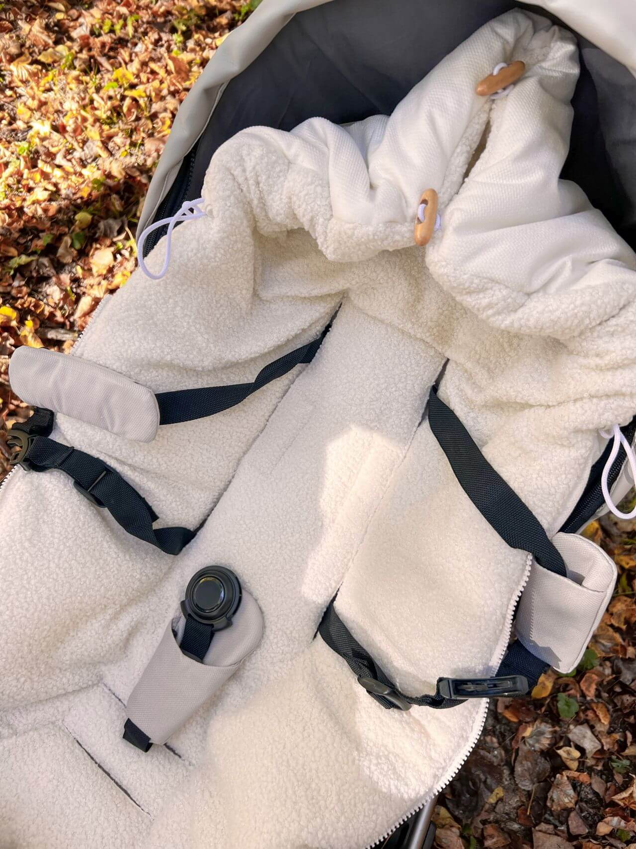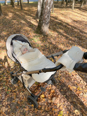 Fusak do kočárku s návleky na ruce – Bouclé se sametem (krémová)