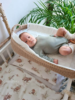- Víceúčelové použití: Kromě přebalování jej můžete využít také jako bezpečné místo k odpočinku (pouze pod dohledem), rekvizitu na focení nebo později jako úložný košík na hračky či doplňky.