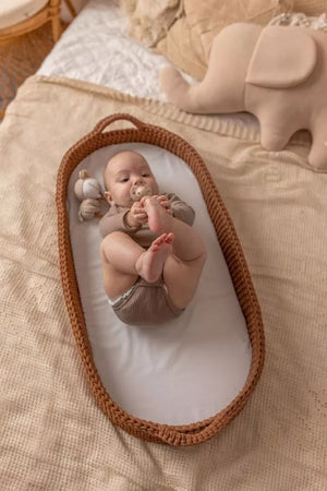 Udělejte z přebalování příjemný okamžik s naším ručně vyráběným háčkovaným přebalovacím košíkem. Tento košík je navržen pro rodiče, kteří si cení jak praktičnosti, tak i stylu, a vytváří útulné a bezpečné místo pro vaše miminko. Díky svému jemnému háčkovanému vzoru a neutrálním barvám dodá vašemu dětskému pokoji nádech boho stylu.