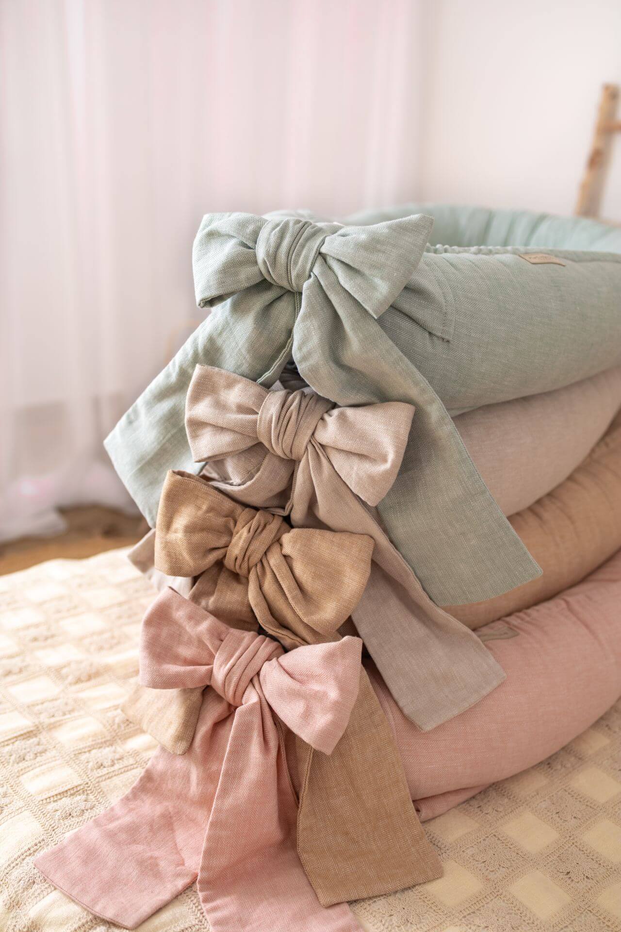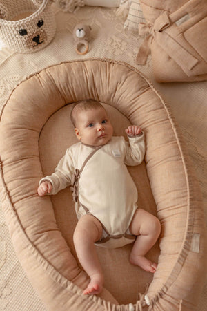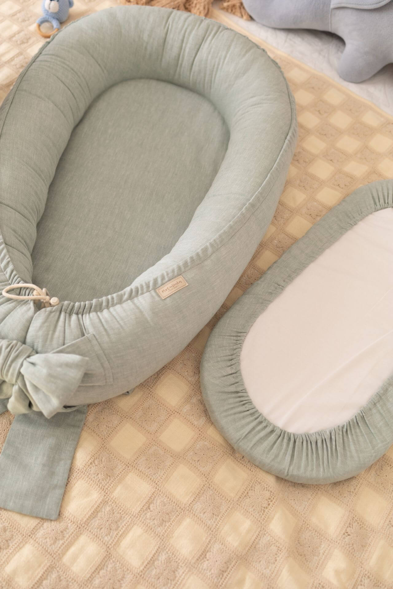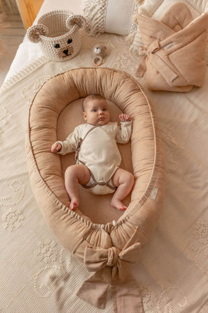 Prémiové ručně šité hnízdečko pro miminka – Herringbone (len & mušelín)