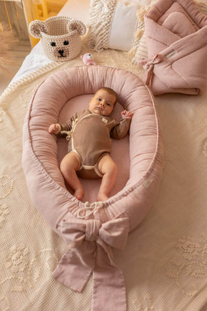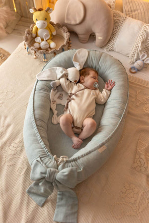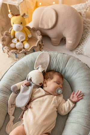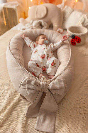 • Lehké a všestranné: Ideální do postýlky, kočárku, na gauč nebo jako přenosná komfortní zóna pro zdřímnutí, hraní či „tummy time“.