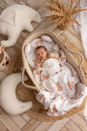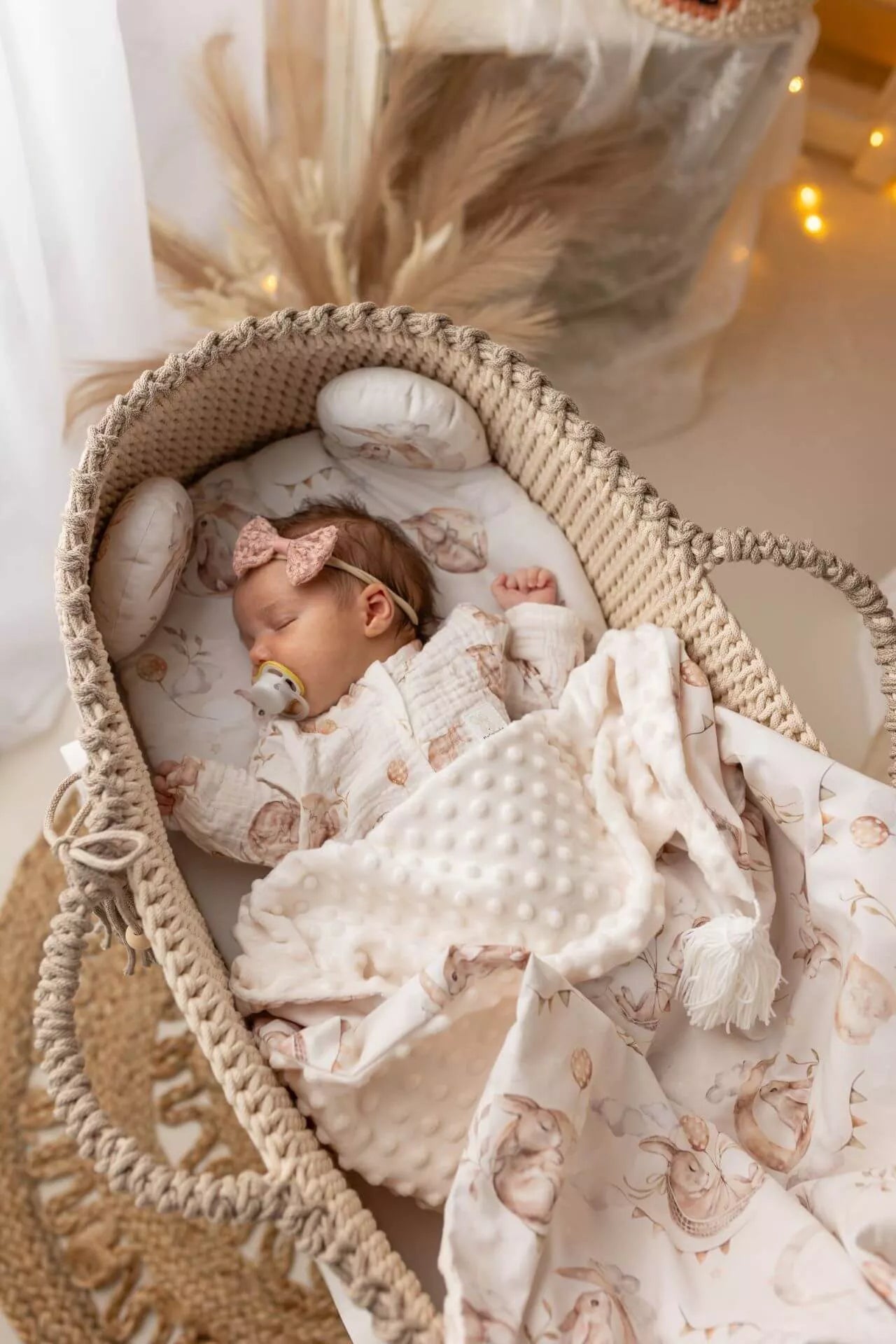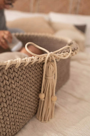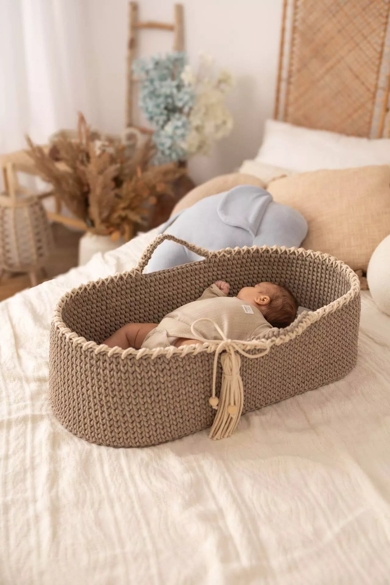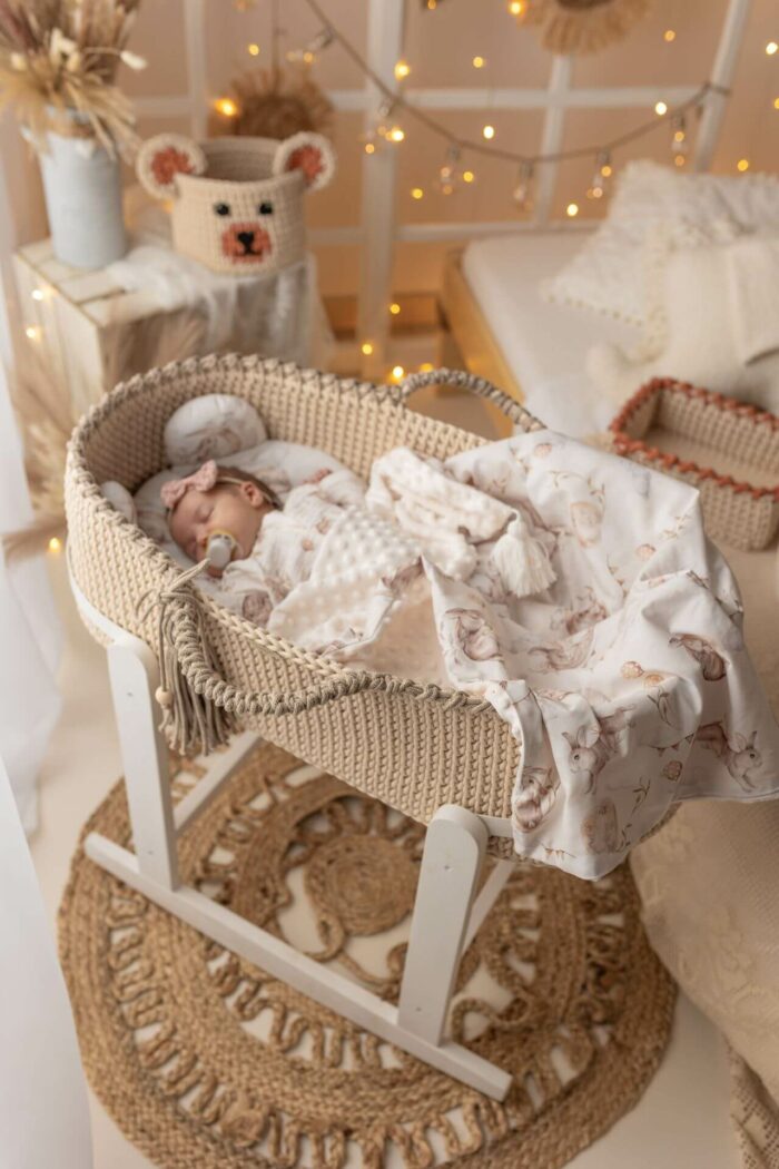 Náš ručně háčkovaný Mojžíšův košík pro miminko je navržen pro klidný a bezpečný spánek vašeho dítěte od narození do cca 6 měsíců. Vyrobený z 100% přírodní bavlněné příze s certifikací OEKO-TEX® Standard 100 je zcela bezpečný pro citlivou pokožku a zároveň je stylovým doplňkem dětského pokoje.
