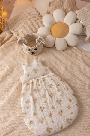 Ručně šitý mušelínový spací pytel pro miminka – Sedmikrásky – 1,5 TOG – 0–6 měsíců
