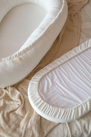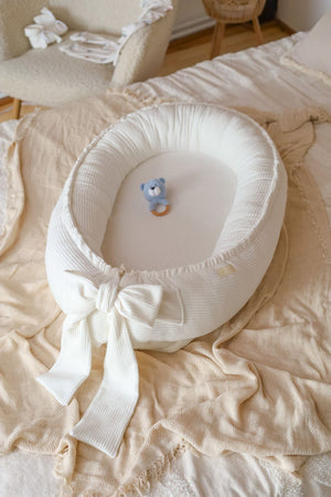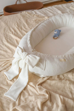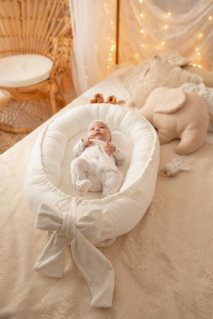 Ručně šité hnízdo pro miminka z měkkého manšestrového veluru – krémové