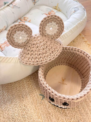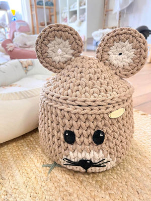 Ručně háčkovaný košíček do dětského pokoje - Myška - Latte