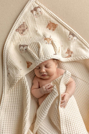 Vneste do každodenní péče i koupelí nádech hravosti s naší dětskou osuškou s kapucí Forest Friends. Vyrobená z prémiové 100% bavlněné vaflové tkaniny, je lehká, vysoce savá a jemná k dětské pokožce. Ideální po koupeli, na pláži i po plavání.