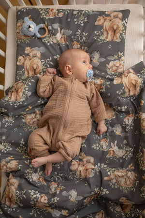 - Materiál: 100% organický bavlněný mušelín (certifikace GOTS)