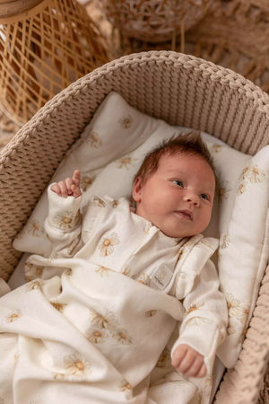 Objevte pohodlí naší lehké prolamované zavinovačky do dětské deky s motivem sedmikrásek – krásně navržený nezbytný doplněk pro vaše miminko, ideální pro teplé dny i noci. Tato jemná deka poskytuje útulné prostředí, aniž by docházelo k přehřívání.