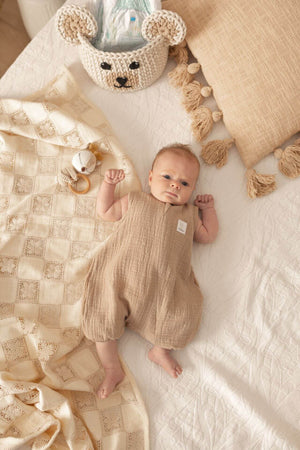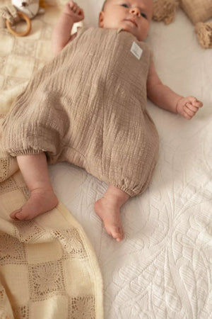 Dopřejte svému dítěti maximální pohodlí během teplých dnů s naším letním mušelínovým overalem pro miminka v barvě Cappuccino. Vyrobený ze 100% měkké mušelínové bavlny s texturou lnu, je ideální volbou pro každodenní nošení i speciální příležitosti. Díky své prodyšnosti a jemnosti je šetrný k citlivé pokožce novorozenců i kojenců.