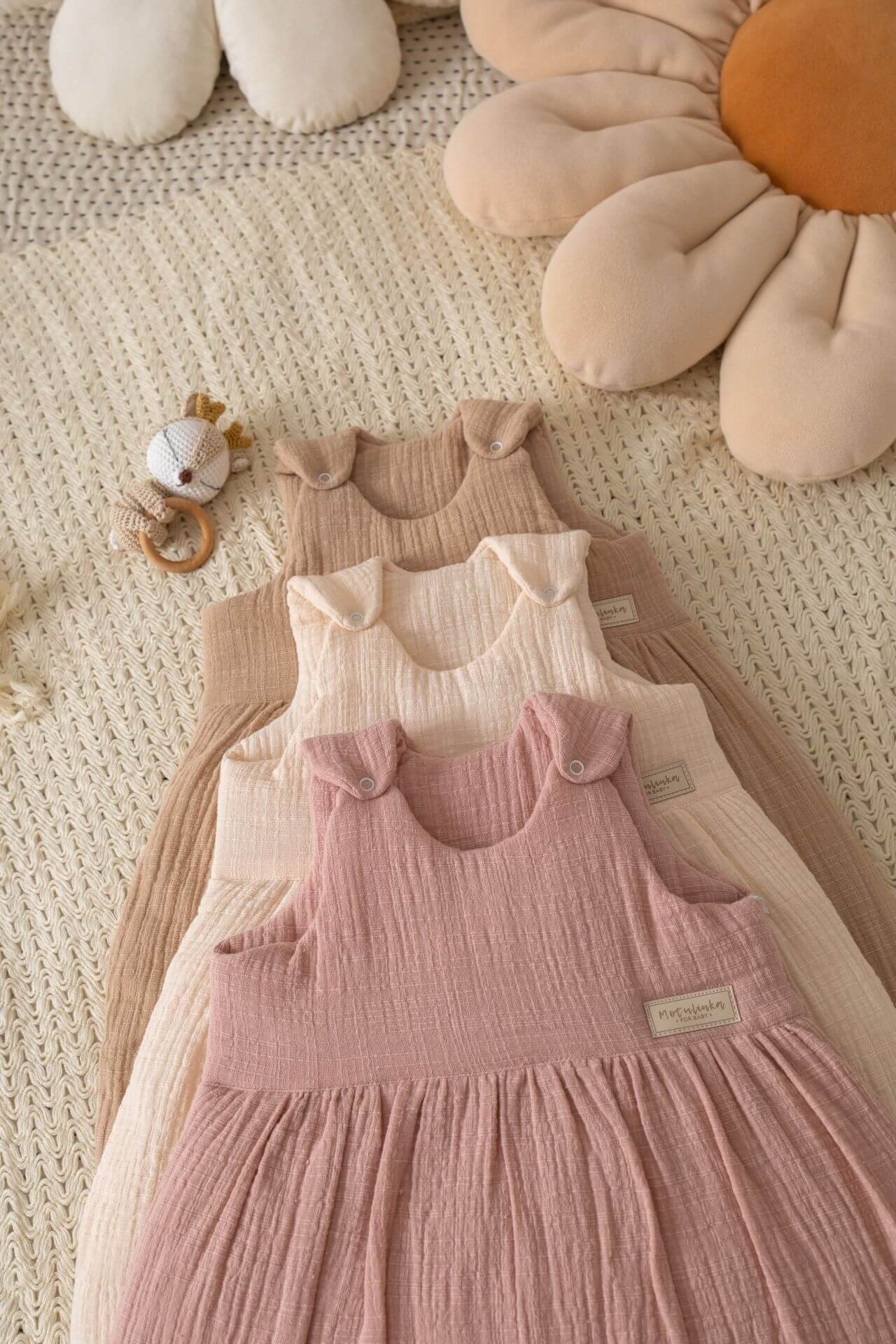 - Prodyšná mušelínová bavlna: 100% přírodní, jemná k pokožce, s certifikací OEKO-TEX® Standard 100.