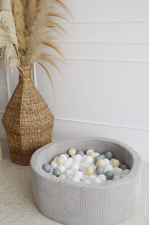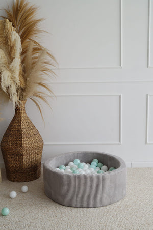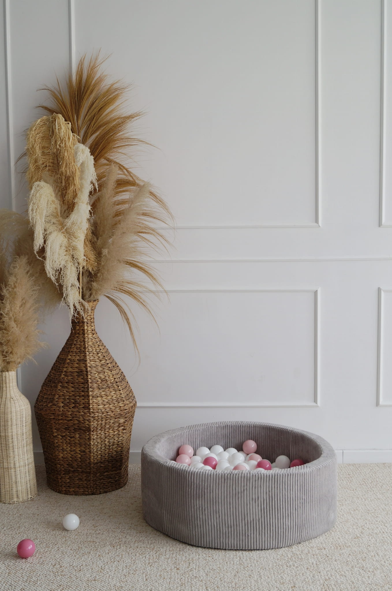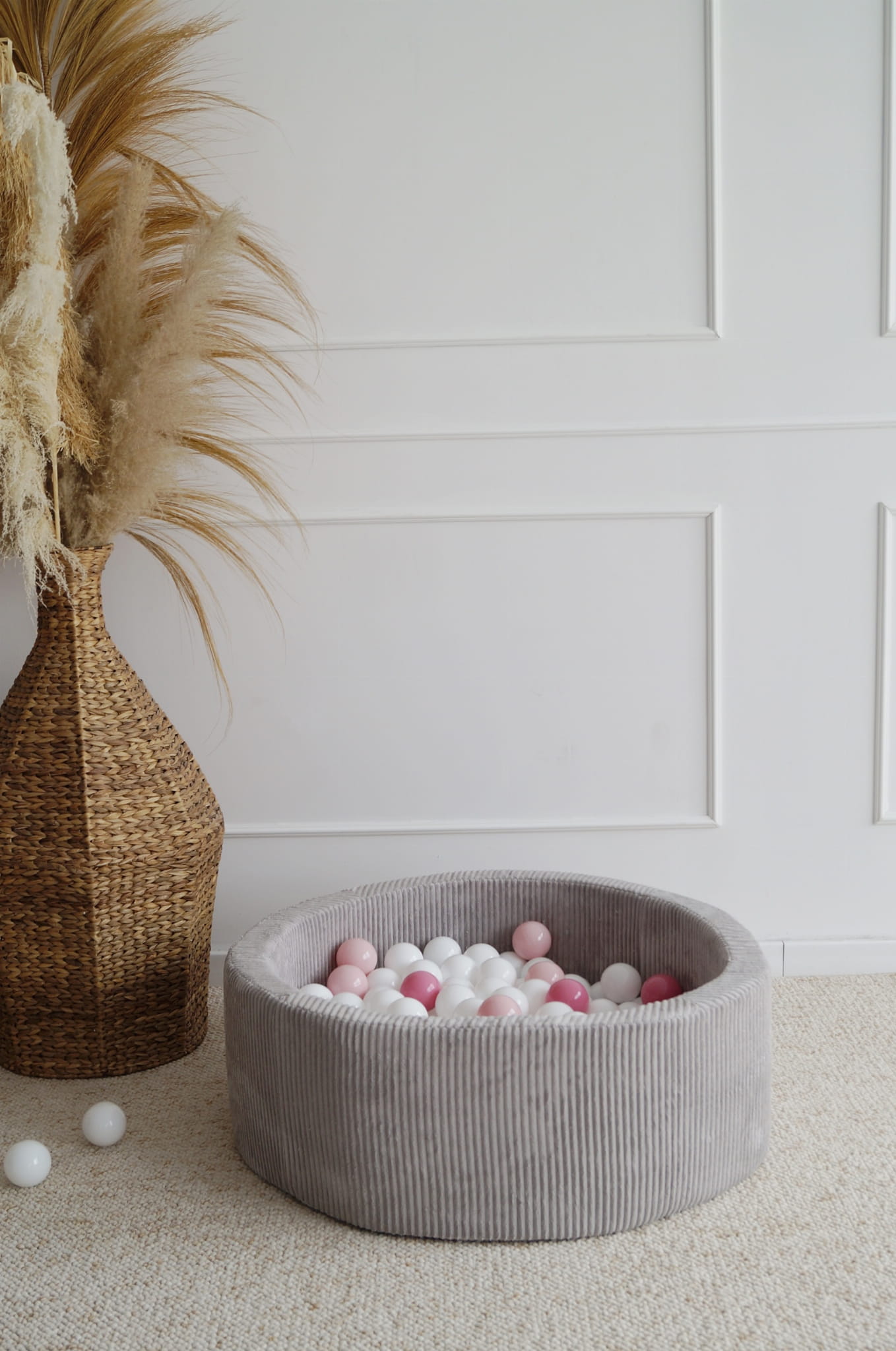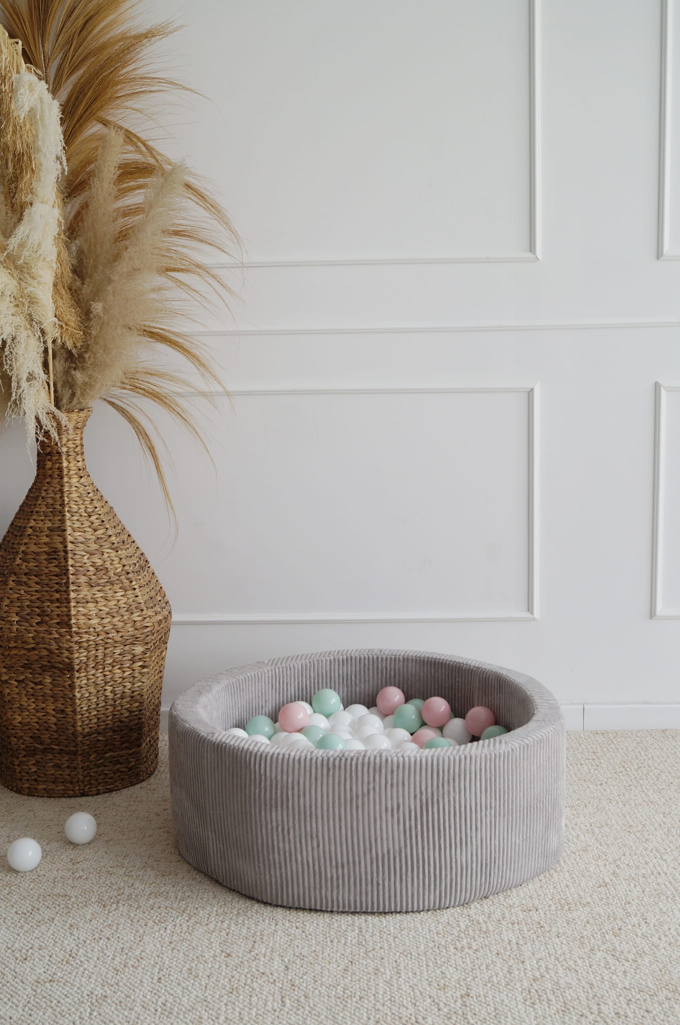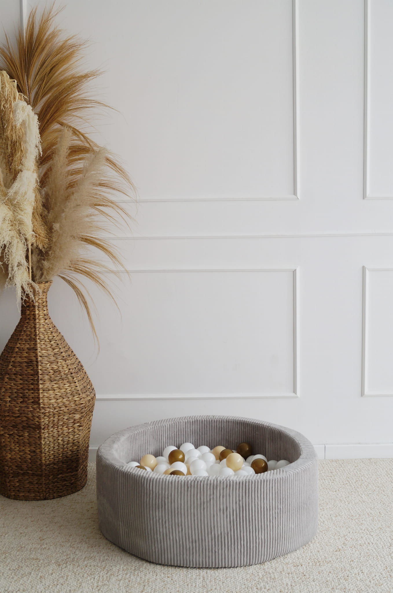 Vneste do svého domova stylovou a hravou atmosféru s naším prémiovým manšestrovým bazénkem s míčky – měkkým, bezpečným a moderním herním prostorem pro miminka a batolata. Tento suchý bazének je vyroben z jemné žebrované manšestrové látky, která dodává interiéru hřejivou texturu a zároveň poskytuje pohodlné a bezpečné místo pro každodenní hraní.