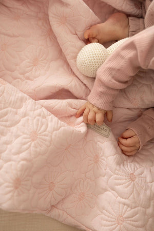 Mušelínová deka / lehká přikrývka pro miminka – Prošívané kytičky je ideální volbou na jaro a léto. Je lehká, prodyšná a zajišťuje příjemný tepelný komfort bez rizika přehřátí.