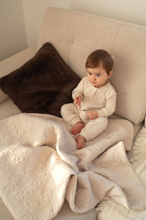 Deka je vyrobena z kvalitního prošívaného bavlněného mušelínu, který je přirozeně měkký, jemný a šetrný k citlivé dětské pokožce. Pikovaná struktura dodává elegantní vzhled a zároveň pomáhá udržet tvar i po opakovaném praní.