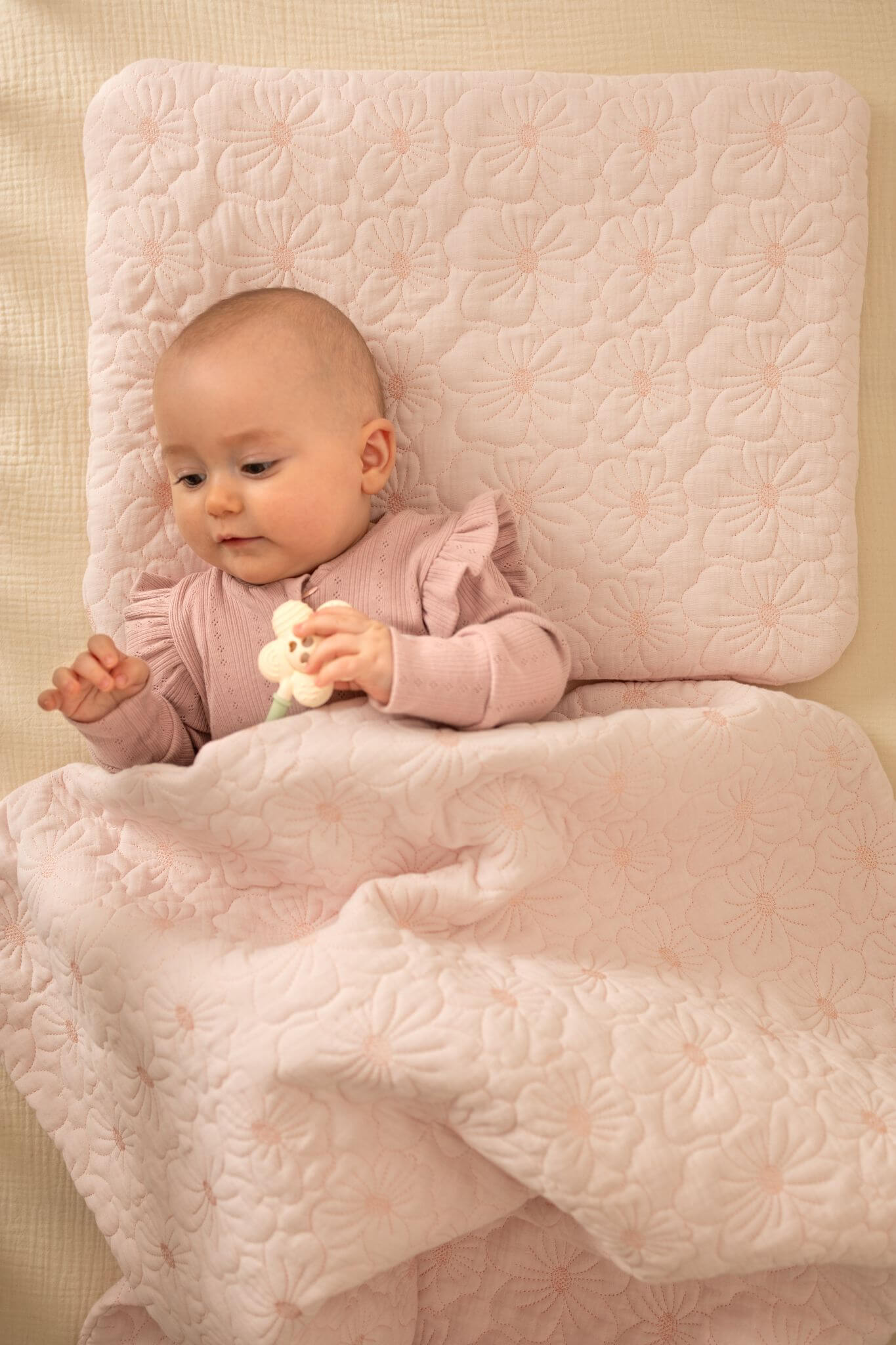 Domů Mušelínová ložní souprava s výplní pro miminka (přikrývka + polštář) – Prošívané kytičky