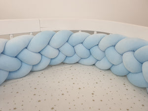 Mantinel do postýlky – Pletený cop 4-pramenný - Modrý (120-400 cm)
