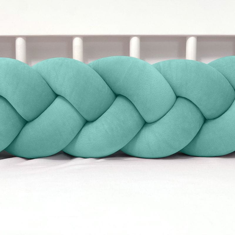 Ochranný mantinel do postýlky - Pletený cop - Mátově zelená (120-400 cm)