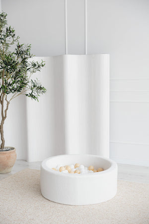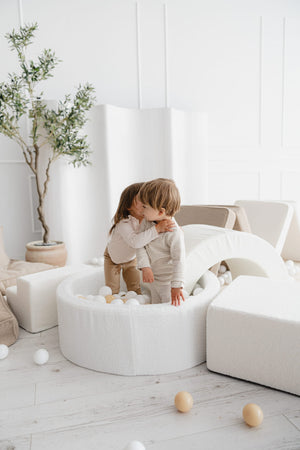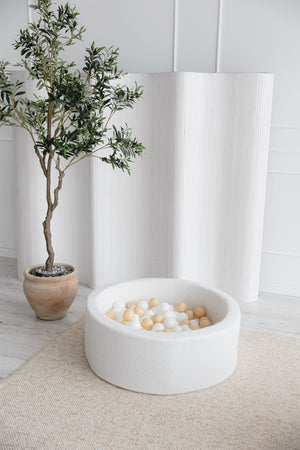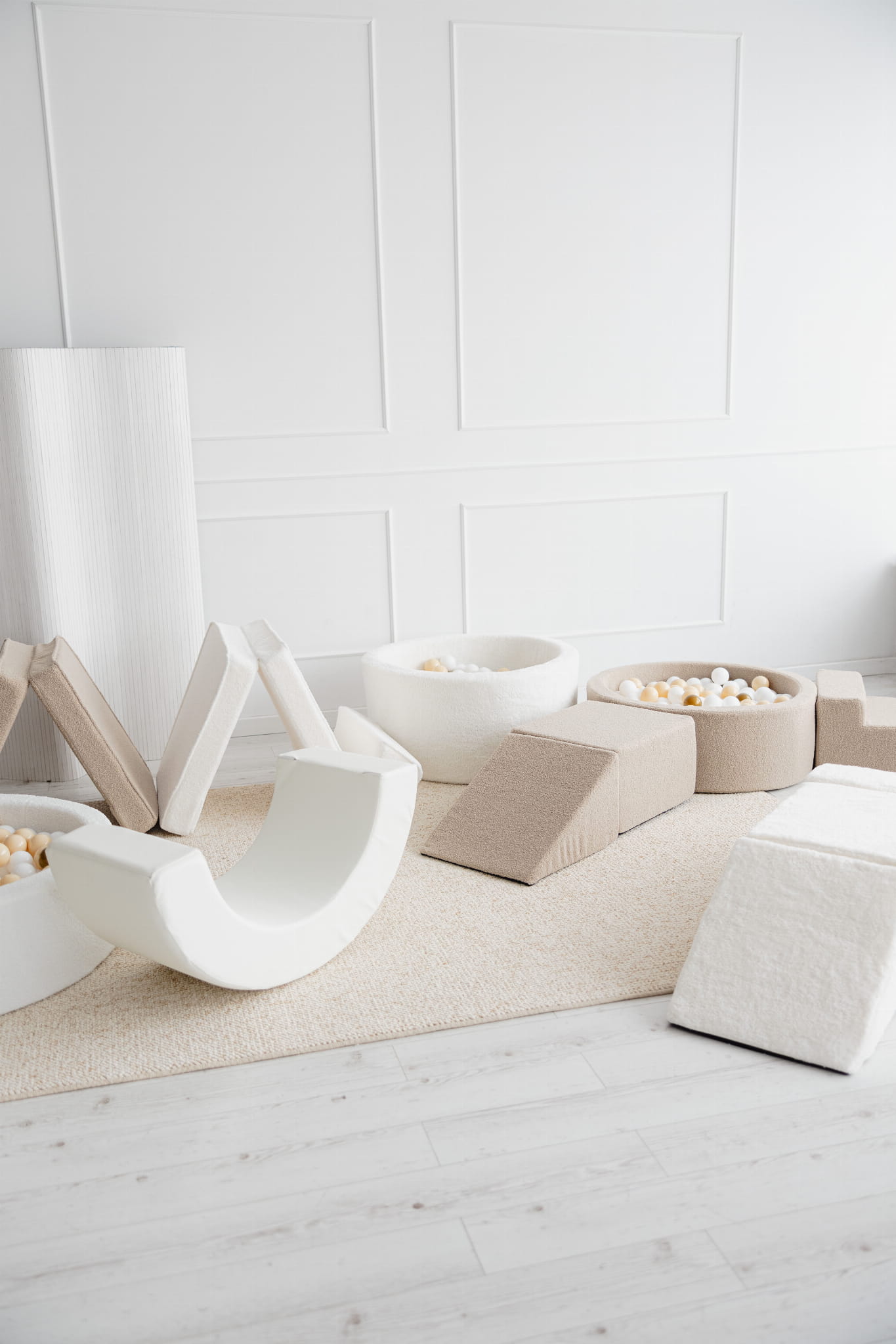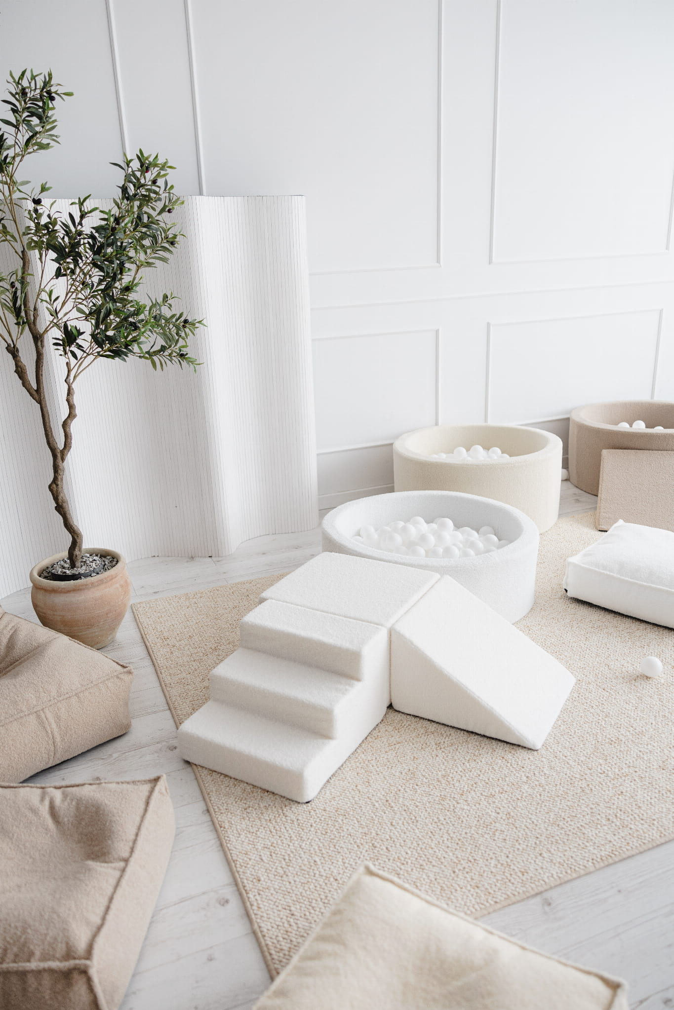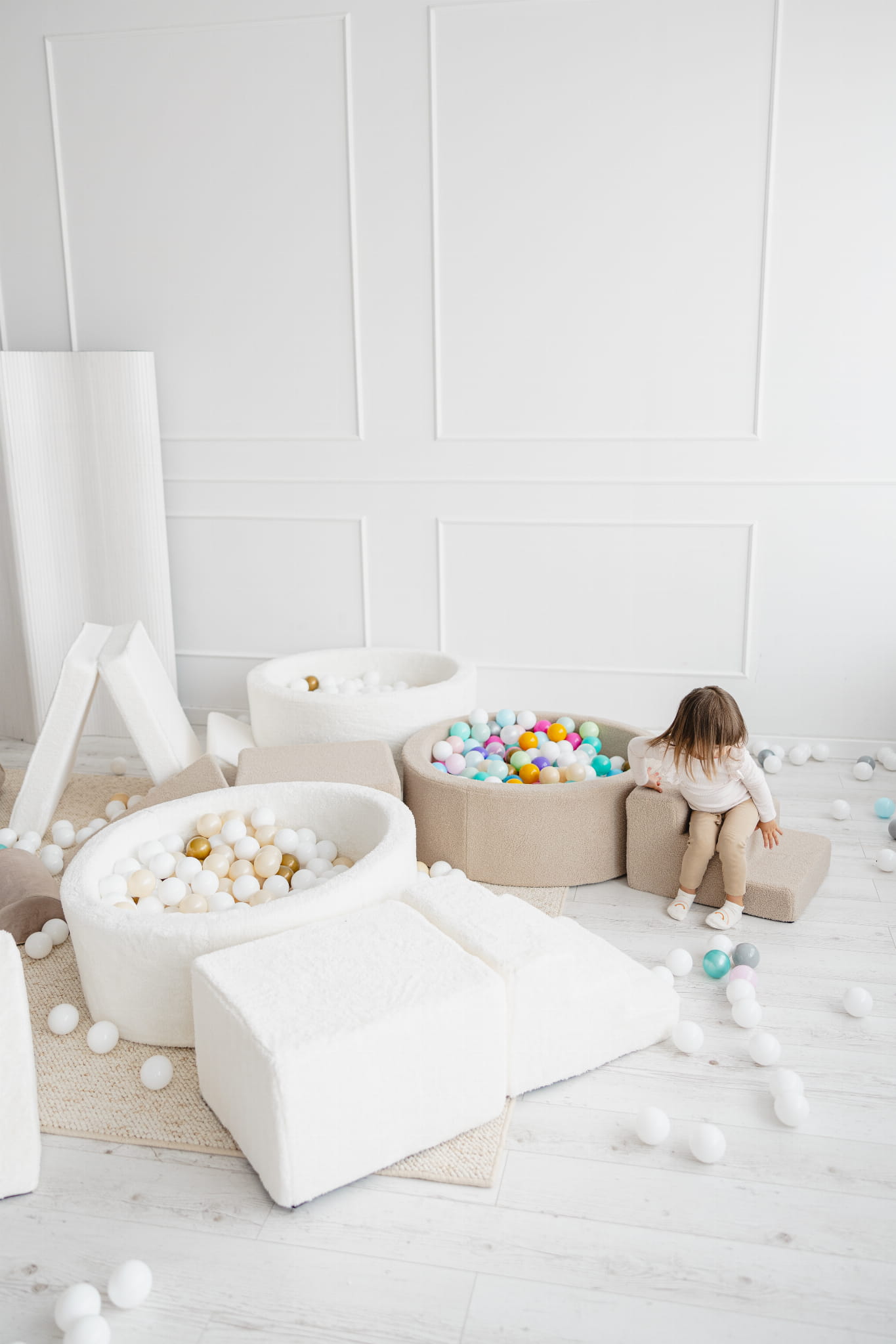 Vneste do svého domova elegantní hrací prvek s naším prémiovým bouclé bazénkem s míčky – stylovým, měkkým a bezpečným prostorem, kde se malé děti mohou smát, hrát si a objevovat. Perfektní doplněk do dětského pokoje, obývacího pokoje nebo herny, který kombinuje pohodlí a moderní design.