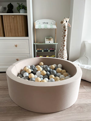 Prémiový bavlněný bazének s míčky – Béžový (200–250 ks)