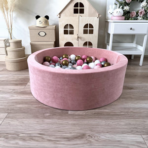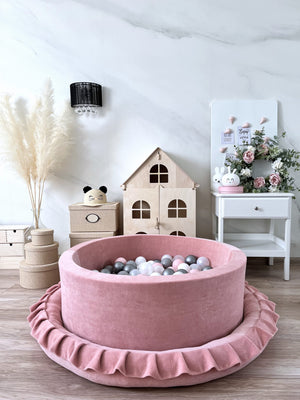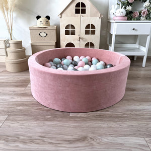 Prémiový sametový suchý bazének s míčky – Růžový (200/250 míčků)
