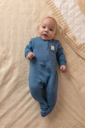 Prošívaný bavlněný overal – džínově modrý (0–12 měsíců)