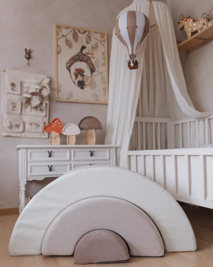 Vneste do hry radost i pohyb s naší pěnovou hrací sadou Duha – měkkým a odolným prvkem ve tvaru oblouku, který podporuje rovnováhu, lezení a kreativní objevování. Skvěle se hodí do dětského pokoje, herny nebo ložnice a stane se stylovým i funkčním doplňkem každodenních her vašeho dítěte.