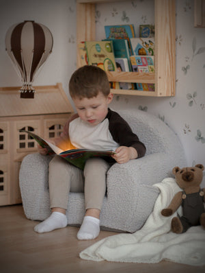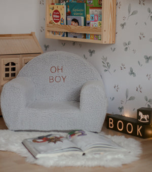 Dopřejte svému dítěti útulné posezení s naším personalizovaným dětským křesílkem z buklé ve stylovém šedém odstínu. Toto pohodlné křesílko, vyrobené z prvotřídních materiálů, je určeno pro batolata od 9 měsíců a poskytuje ideální místo pro sezení, čtení i relaxaci. Plyšová buklé látka v kombinaci s kvalitní PUR pěnou vytváří jemné, ale podpůrné posezení, které se hodí do dětského pokoje, hracích koutků i obývacího pokoje. Křesílko je nejen funkční, ale i krásný designový doplněk.