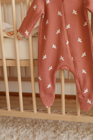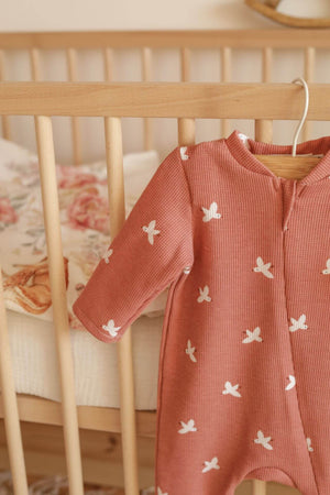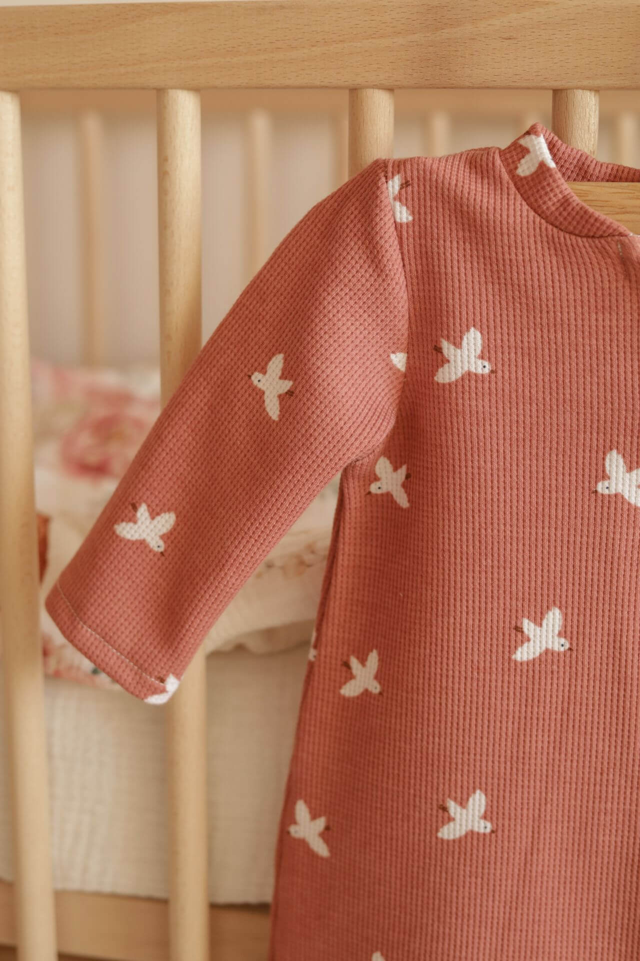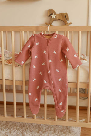 Měkký bavlněný overal na zip pro miminka - Coral Birds (0-12 měsíců)