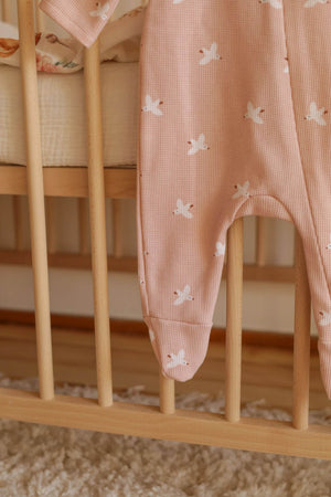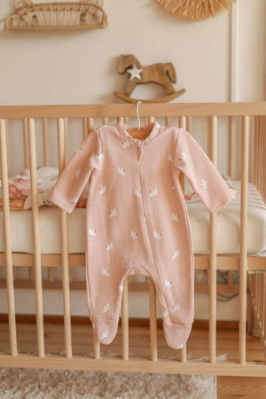 Měkký bavlněný pyžamový overal na zip - pudrově růžoví ptáčci (0-12 měsíců)