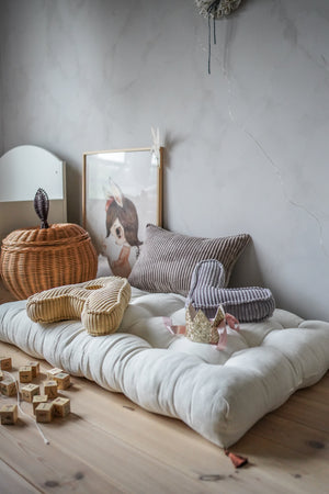 Vneste do dětského koutku nádech elegance a pohodlí s naší ručně prošívanou matrací v krémové barvě. Tato krásná, ručně vyrobená matrace nabízí dětem měkký a příjemný prostor pro hraní, lezení a relaxaci. Hrací podložka, vyrobená z vysoce kvalitních materiálů, je stylová i praktická. Dodá teplo každé místnosti a zároveň poskytne pohodlné a bezpečné místo pro vaše dítě.