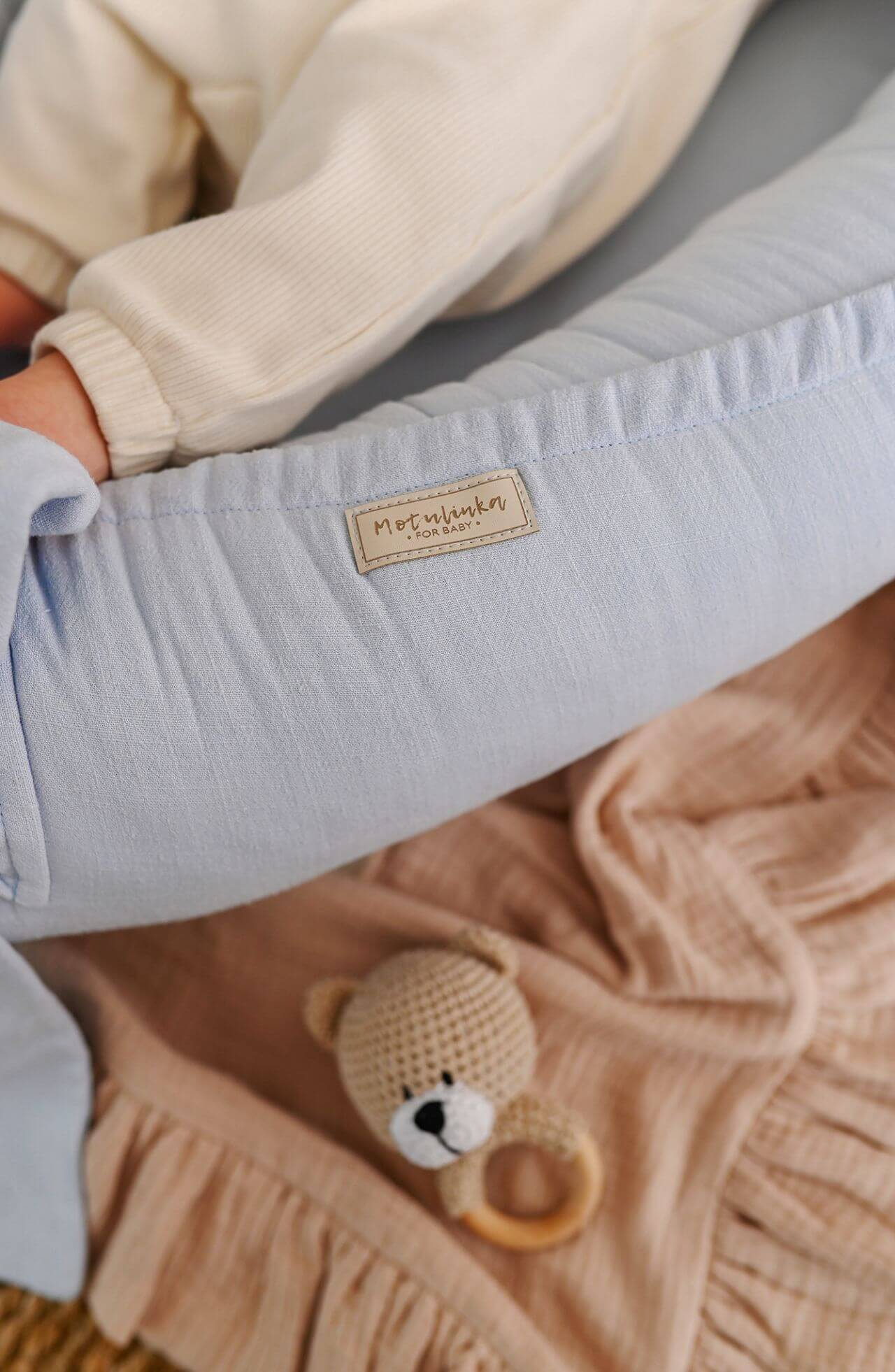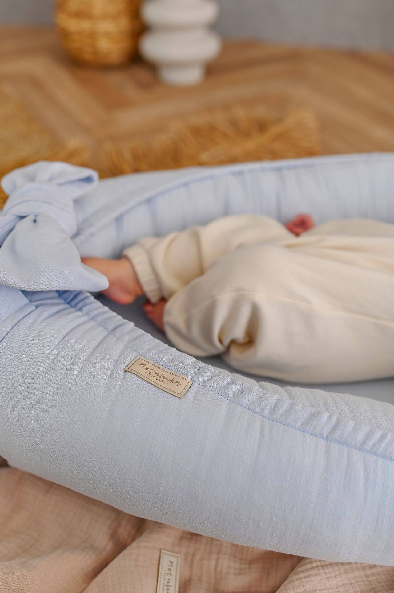 Ručně vyráběné hnízdečko pro miminka z měkčeného lnu - Baby Blue