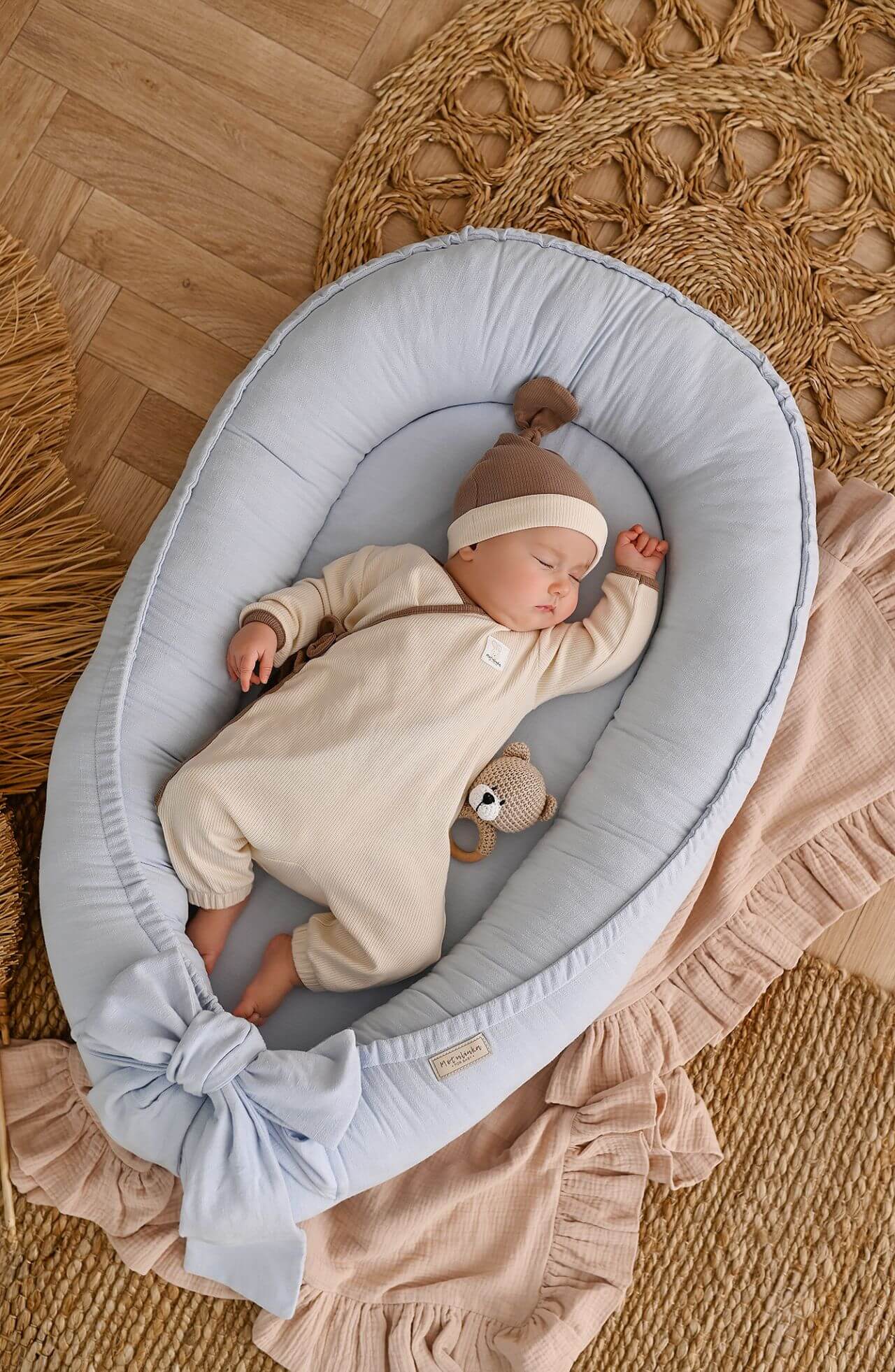 Toto prémiové dětské hnízdo spojuje komfort, bezpečnost a přírodní eleganci. Je praktickým a stylovým doplňkem do dětského pokoje a poskytuje miminku známý, útulný prostor pro spánek a odpočinek – doma i na cestách.