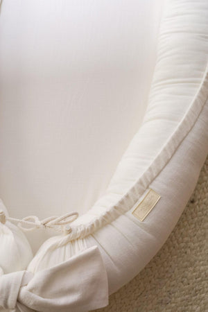 Ručně šité hnízdo pro miminka z měkkého lnu – Krémové