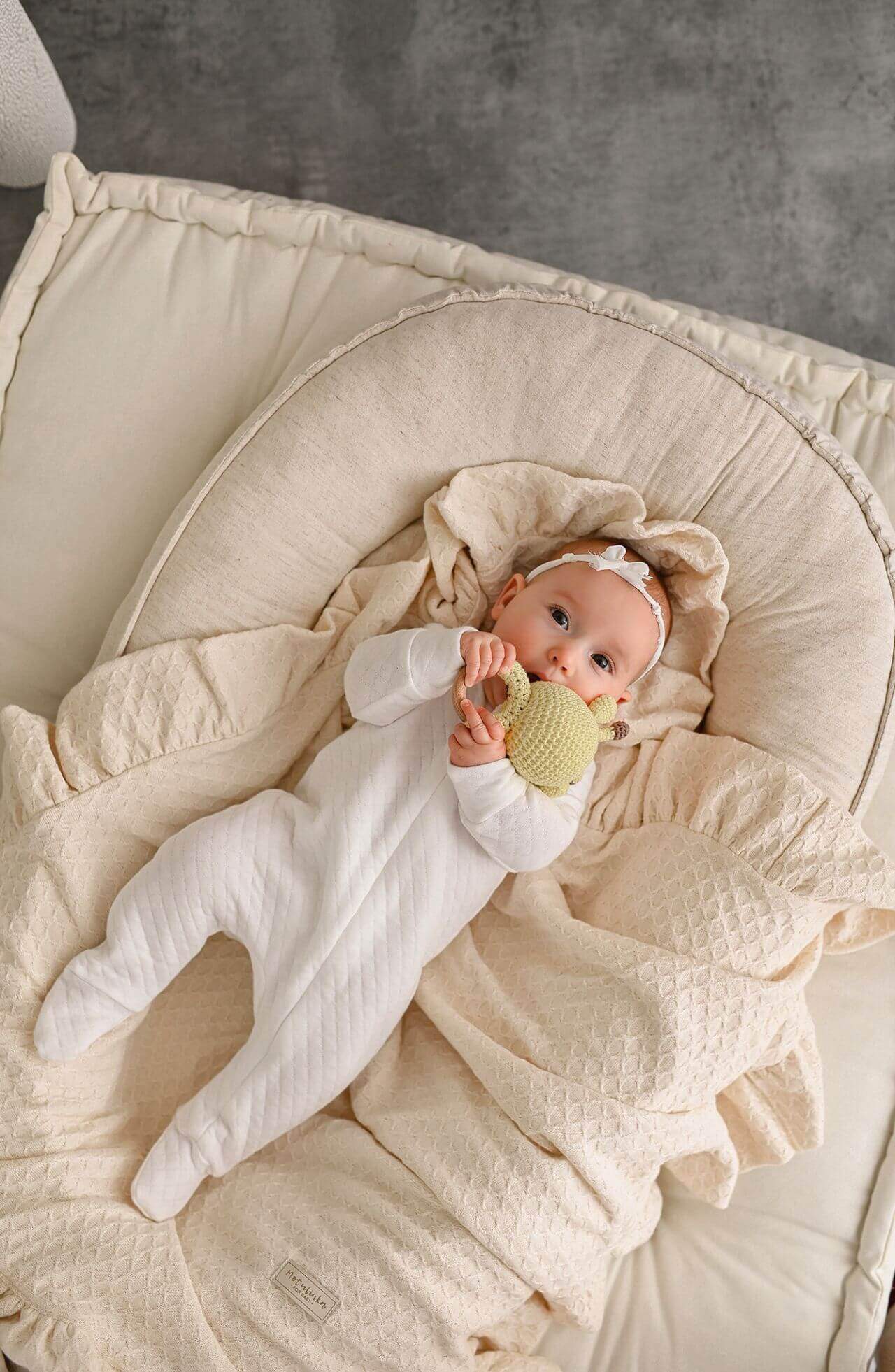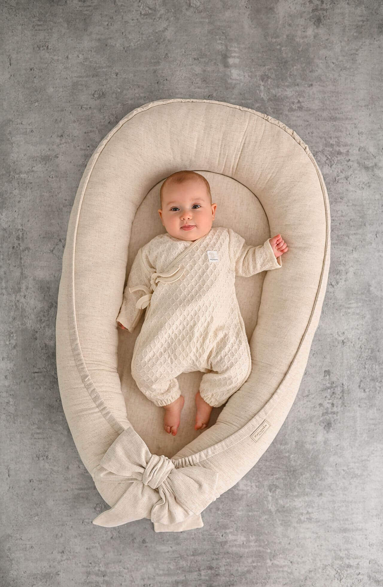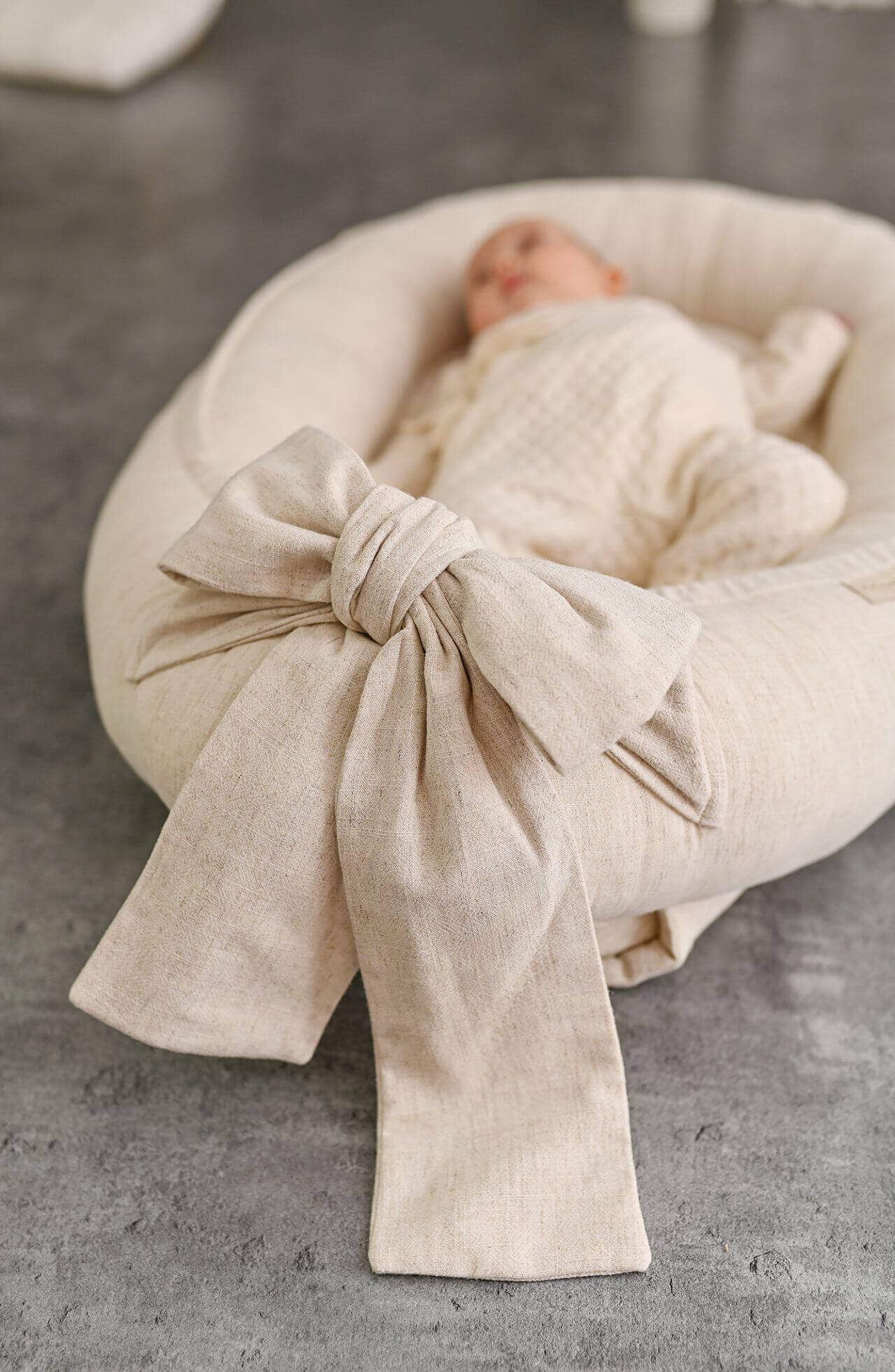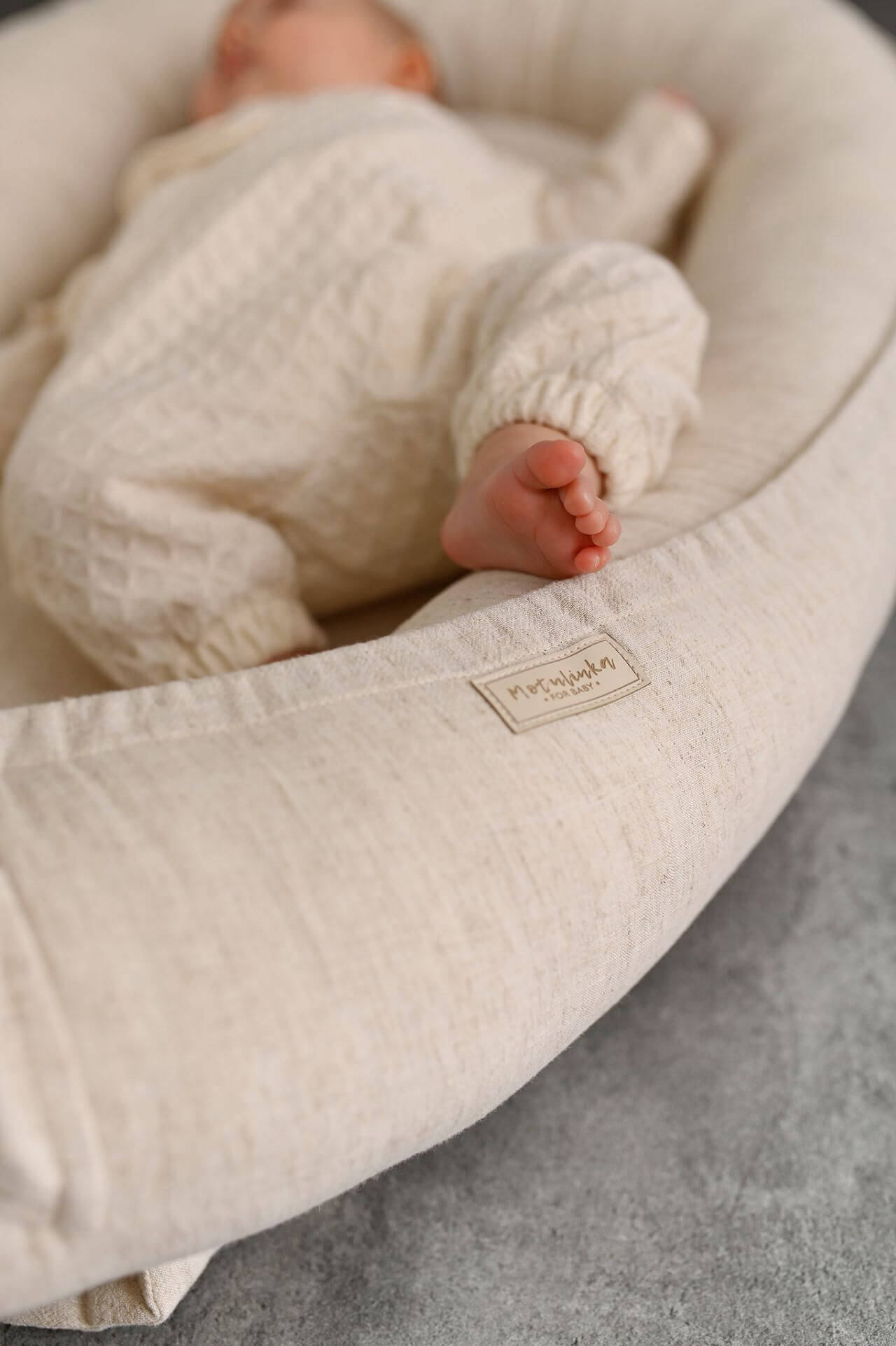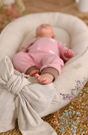 Ručně vyráběné hnízdečko pro miminka z měkčeného lnu - Natural