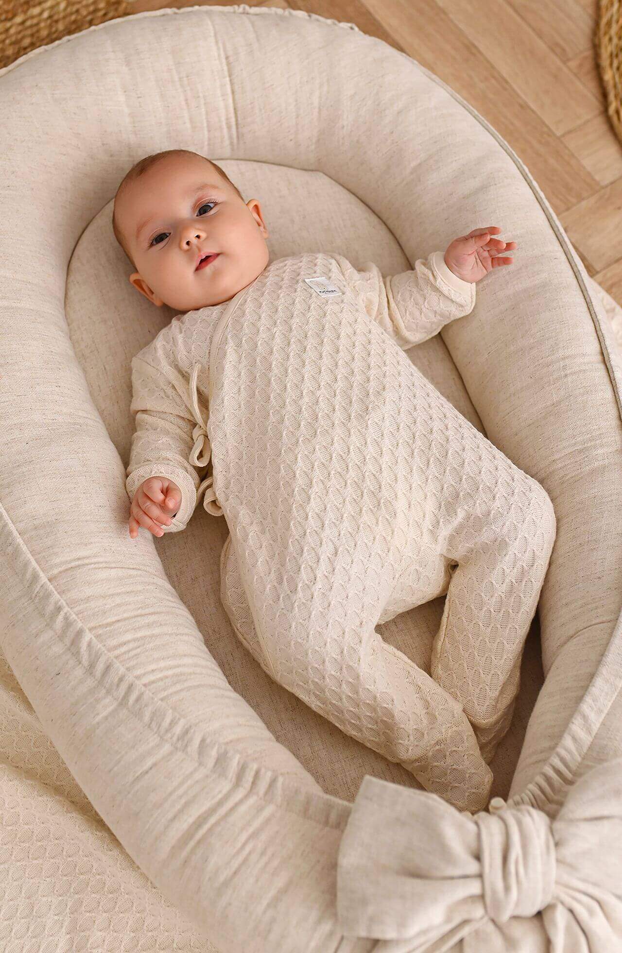 Toto prémiové dětské hnízdo spojuje bezpečí, komfort a přírodní eleganci. Je praktickým a stylovým doplňkem dětského pokoje a zajistí vašemu miminku útulný a chráněný prostor pro spánek i odpočinek – doma i na cestách.