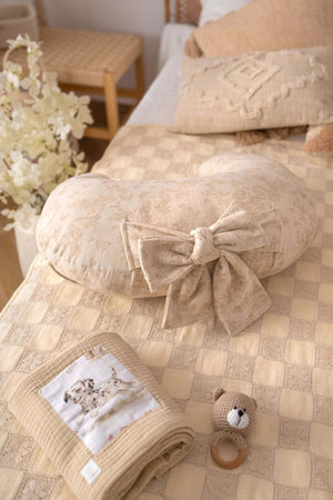 Tento kojící polštář z bavlny a lnu kombinuje praktičnost, pohodlí a styl. Usnadňuje krmení, podporuje blízkost mezi rodičem a dítětem a může sloužit i jako měkká opora pro miminko. Díky prodyšným přírodním materiálům je příjemný na dotek a vhodný pro celoroční použití.