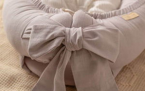 Kojící polštář z měkkého lnu s elegantní mašlí je navržen pro pohodlí, oporu a nadčasový styl. Perfektně ladí s našimi ručně šitými lněnými hnízdečky pro miminka, ale obstojí i jako samostatný doplněk pro každodenní péči o dítě. Je vyroben ze směsi 50 % lnu a 50 % viskózy a certifikován dle OEKO-TEX® Standard 100 – bezpečný, prodyšný a šetrný k citlivé pokožce.