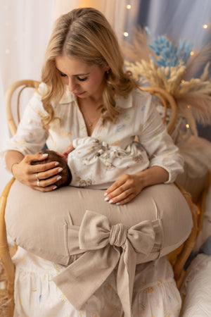 Měkký lněný kojící polštář s mašlí (5 barev)