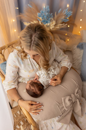 - Víceúčelový design: Vhodný nejen pro kojení, ale i pro čas na bříšku, první oporu při sezení nebo jako útulná podložka.