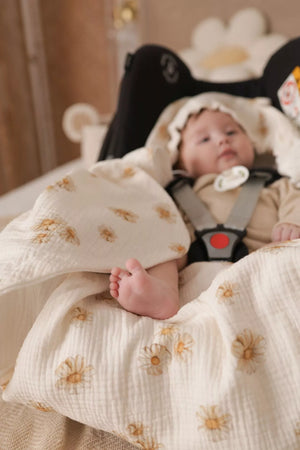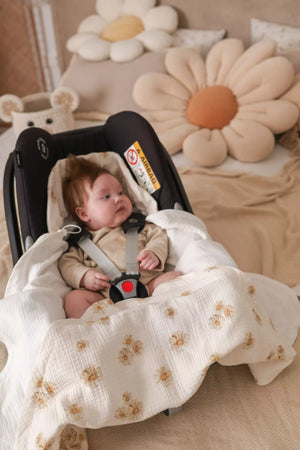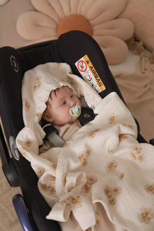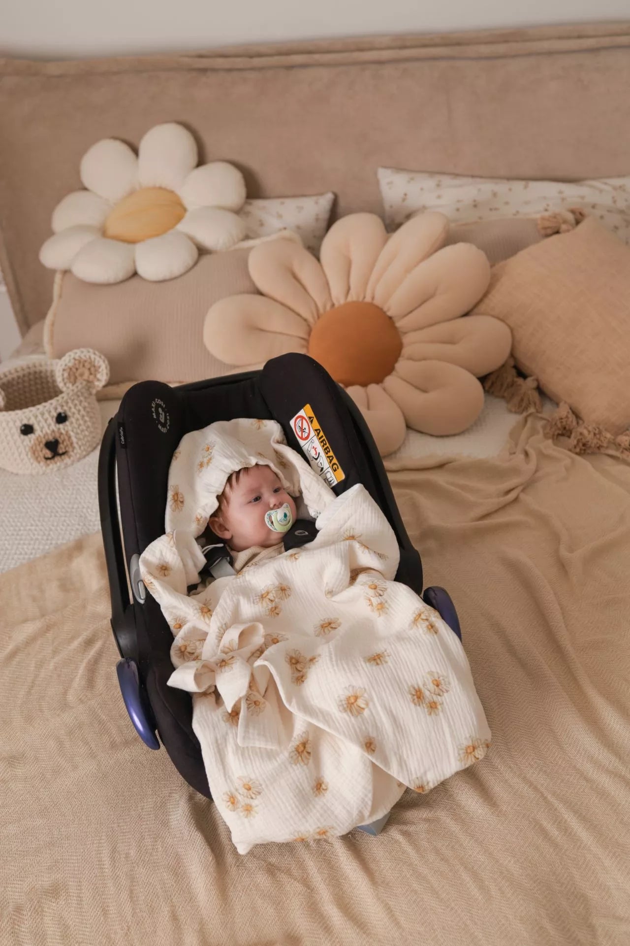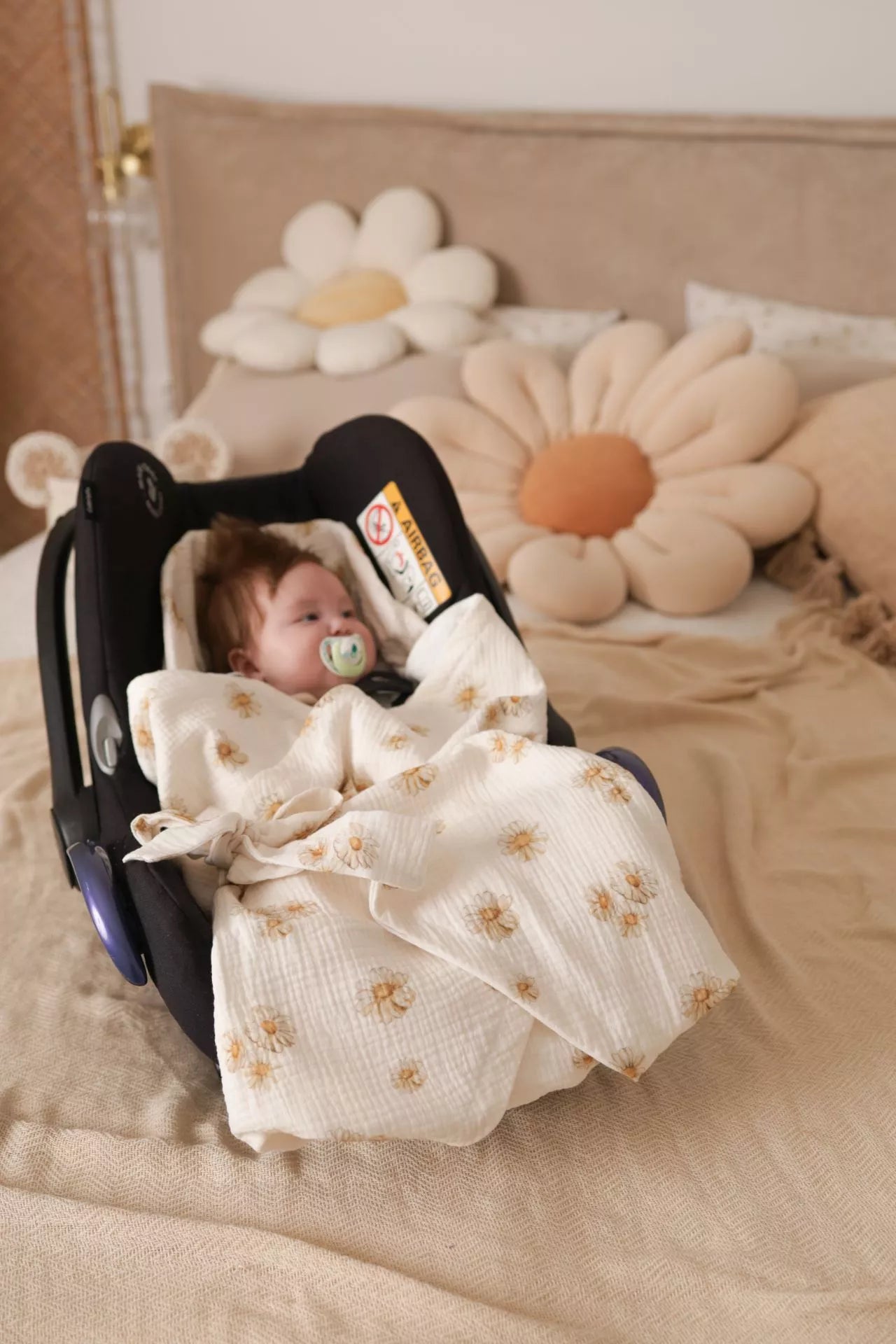 Letní deka do autosedačky pro miminka – 100% mušelínová bavlna – Sedmikrásky
